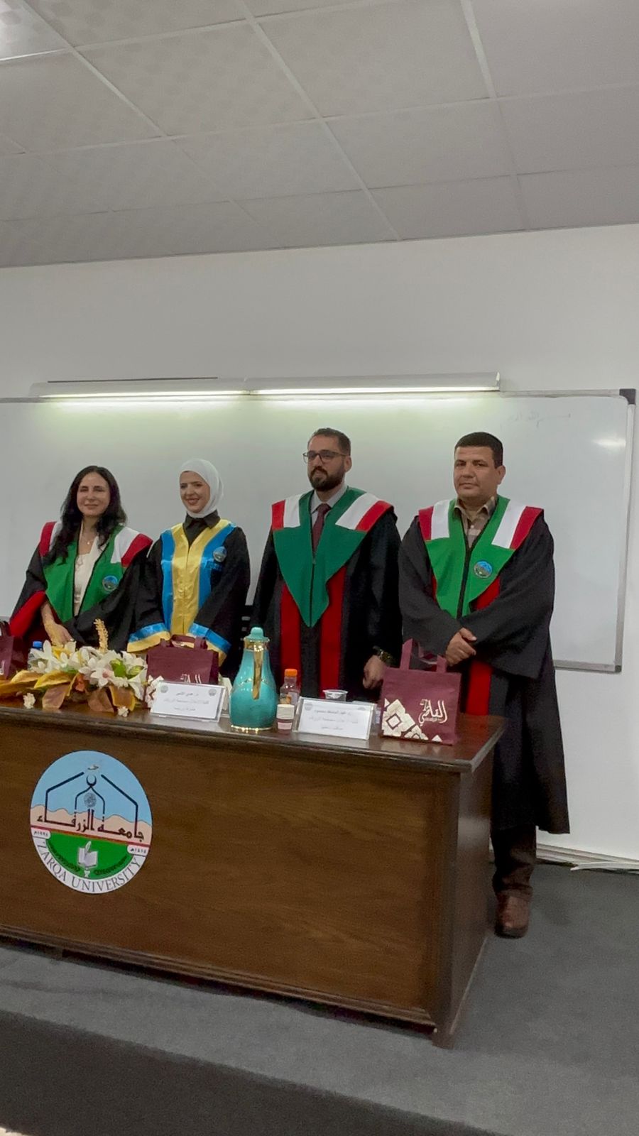 وناقشت الزميلة رؤى الخوالدة رسالتها اليوم في مدرج كلية الإعلام بجامعة الزرقاء ،حيث تألفت لجنة المناقشة من الدكتور عدي الأمير مشرفا رئيسيا،والدكتور عبدالباسط احمد محمود من جامعة الزرقاء عضواً ومناقشات داخلياً ،والدكتورة منال هلال مزاهرة من جامعة البترا عضواً ومناقشا خارجياً.