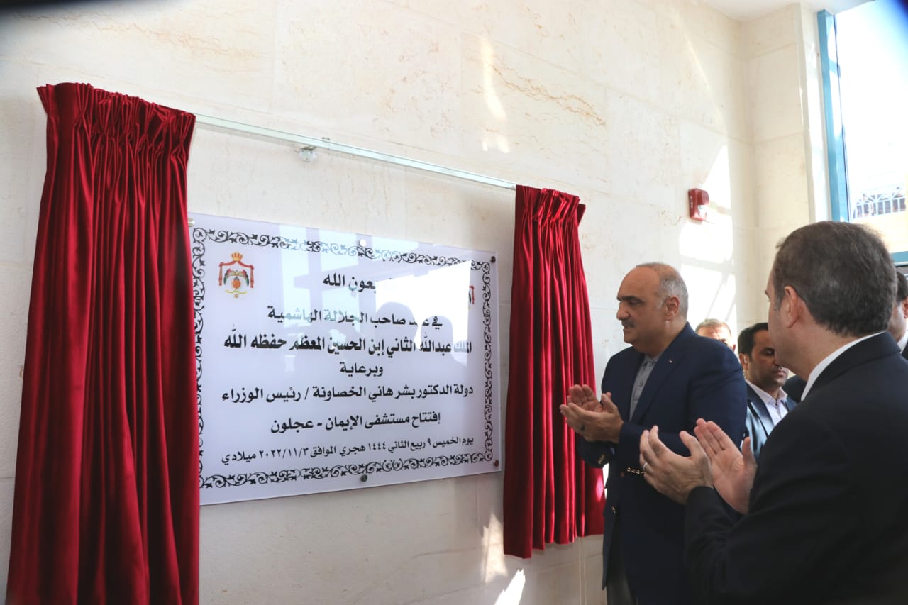 -افتتح رئيس الوزراء الدكتور بشر الخصاونة اليوم الأربعاء مستشفى الإيمان الحكومي الجديد بمحافظة عجلون بسعة (250) سريرا، وبكلفة إجمالية (40) مليون دينار.
