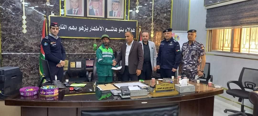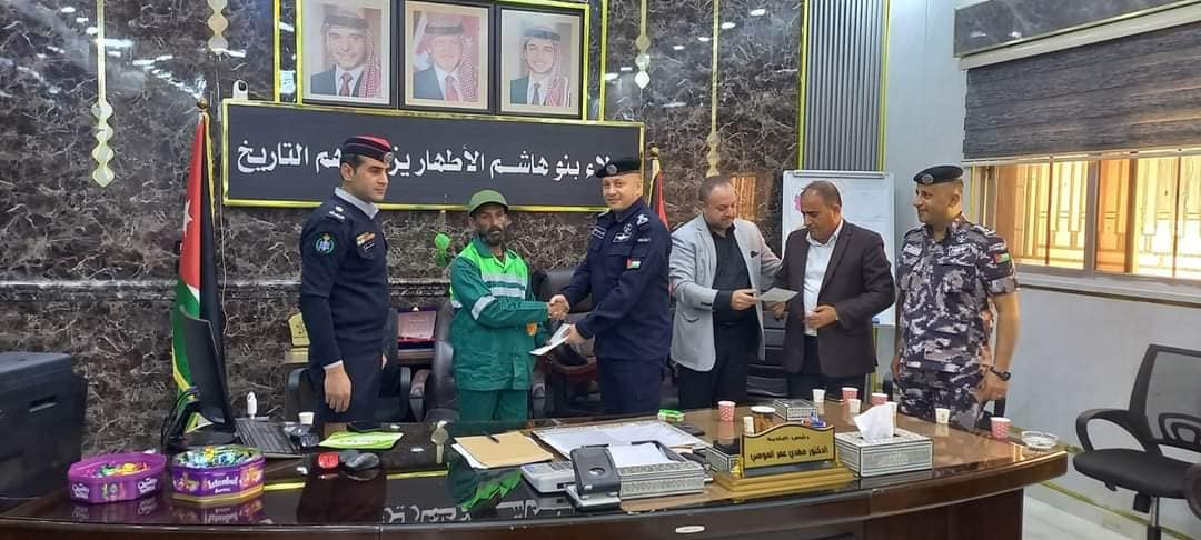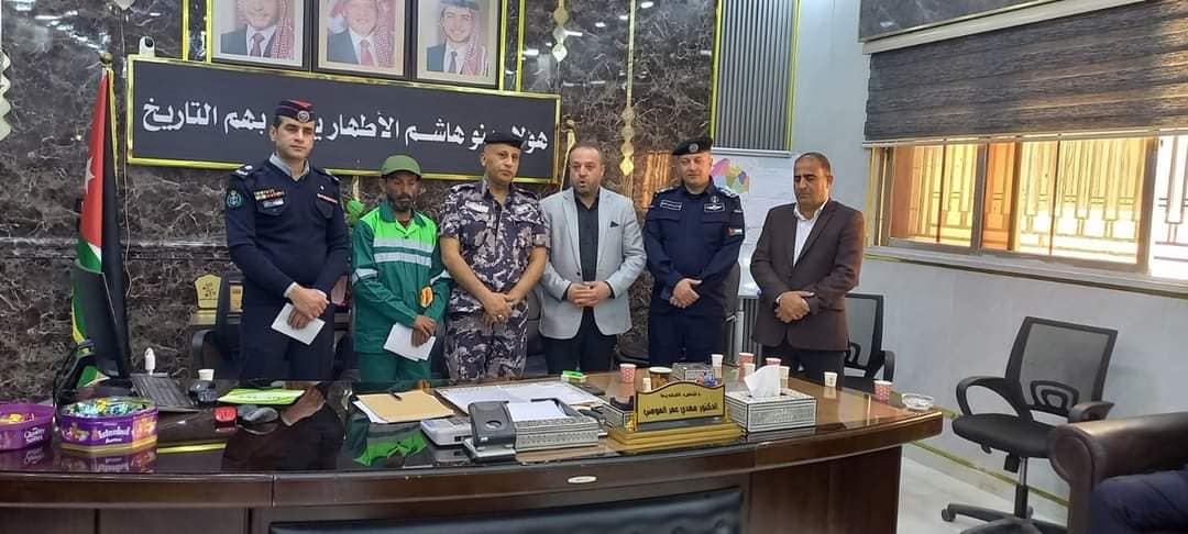 بحضور مدير قضاء صخره شرحبيل الزيناتي و مدير شرطة محافظة عجلون العميد وصفي العزام ومدير دفاع مدني محافظة عجلون العقيد يوسف الشخاتره وعدد من نشامى الأمن العام ونشامى الدفاع المدني واعضاء المجلس البلدي وموظفي البلدية قام رئيس بلدية الجنيد الدكتور مهدي المومني بتكريم عامل الوطن فيصل ياسر المومني تقديرا لجهوده يوم أمس بانقاذ طفل سقط ببئر بمنطقة عبين.