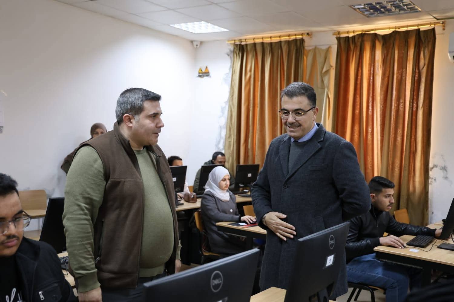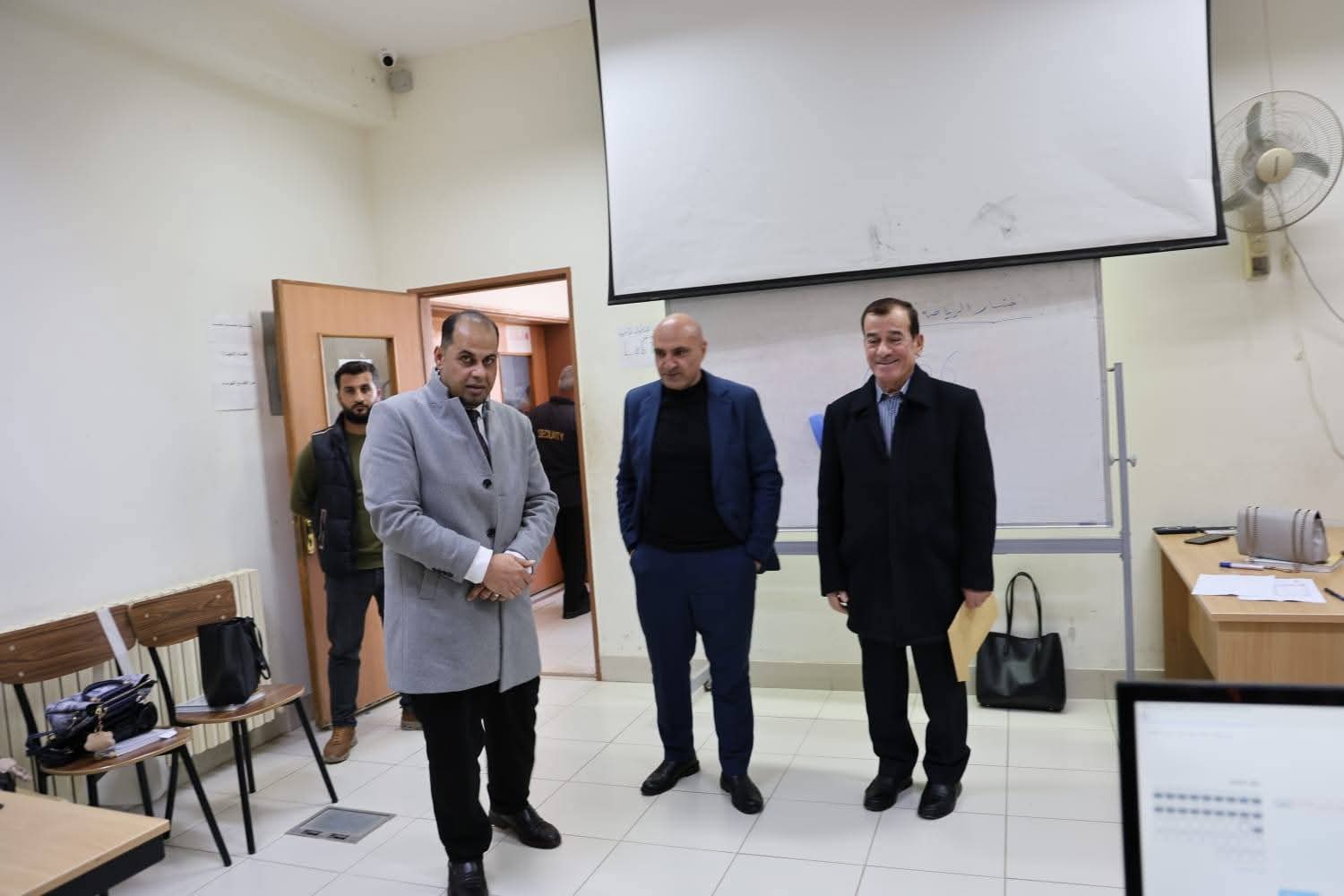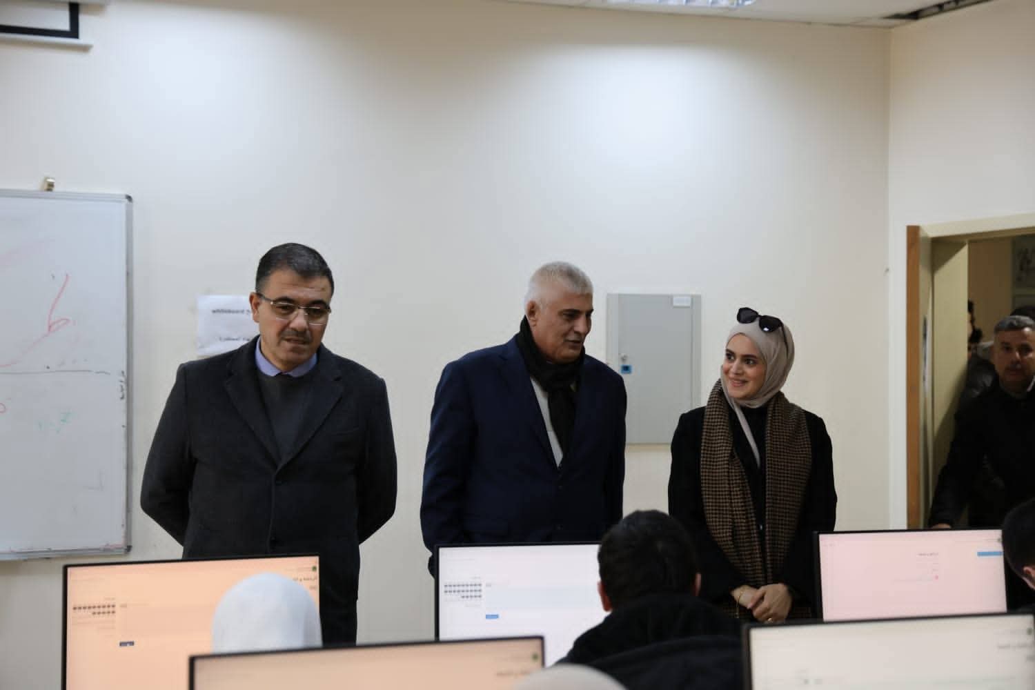 واطّلع خلال الجولة على الإجراءات التنظيمية المتبعة لضمان سير الامتحانات بكل يسر وانتظام، والالتزام بالتعليمات والأنظمة المعتمدة، بما يوفر بيئة امتحانية عادلة وآمنة للطلبة، مشيدًا بجهود الكوادر التدريسية والإدارية في إنجاح العملية الامتحانية.