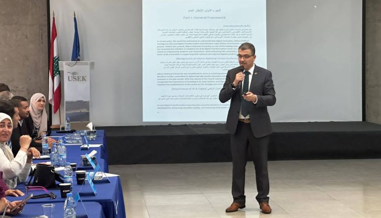 وخلال أعمال الورشة، قدّم الدكتور الهناندة حديثًا مطوّلًا استعرض فيه الخطة الاستراتيجية لمركز الذكاء الاصطناعي والتحول الرقمي في جامعة عجلون الوطنية، والتي حملت عنوان: “تمكين الابتكار وقيادة التحول الرقمي”.