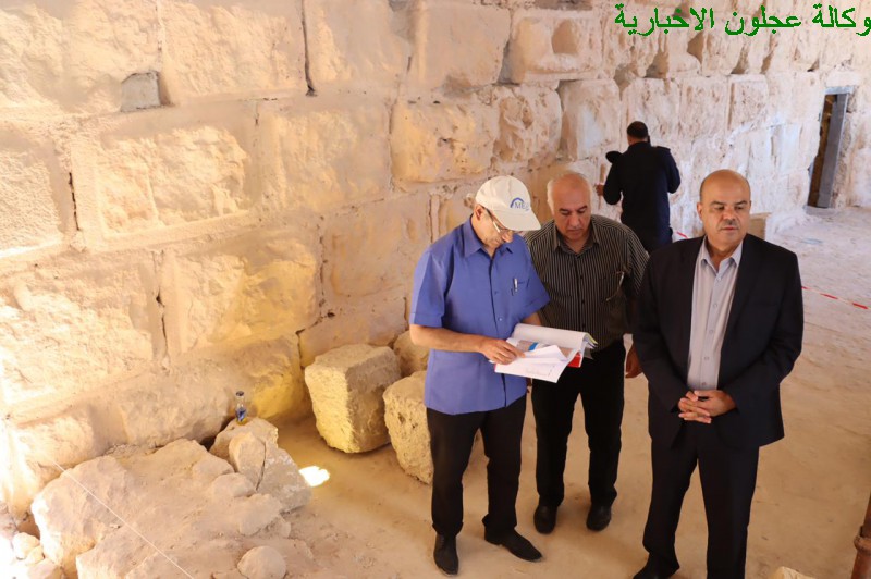 عجلون الإخبارية : في اطار تفقد سير العمل في مشاريع مجلس المحافظة في قطاع السياحة و الاثار قام رئيس لجنة السياحة و الاثار في مجلس محافظة عجلون منذر الزغول يرافقه مدير اثار عجلون الدكتور اسماعيل ملحم بزيارة يوم أمس الاربعاء الى قلعة عجلون الاثرية ، اطلع خلالها على مشروع ترميم و صيانة قلعة عجلون الذي تنفذه مديرية اثار محافظة عجلون .