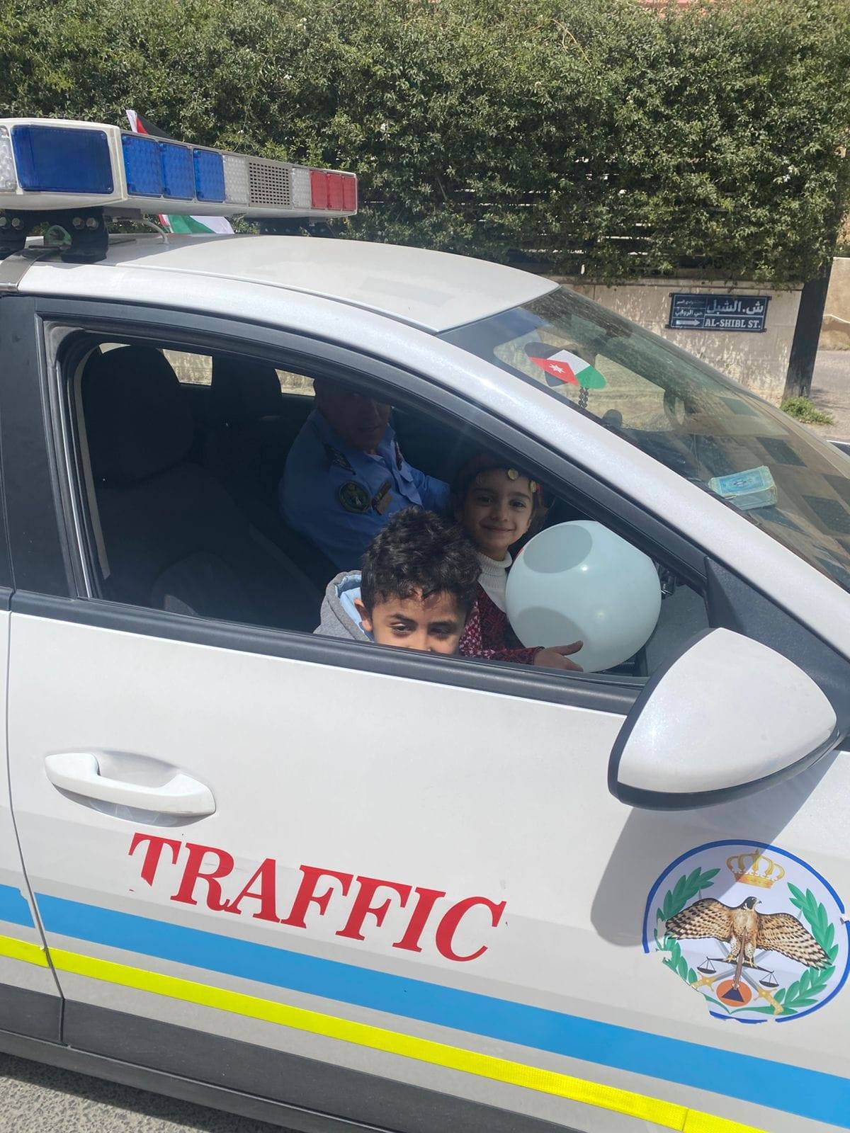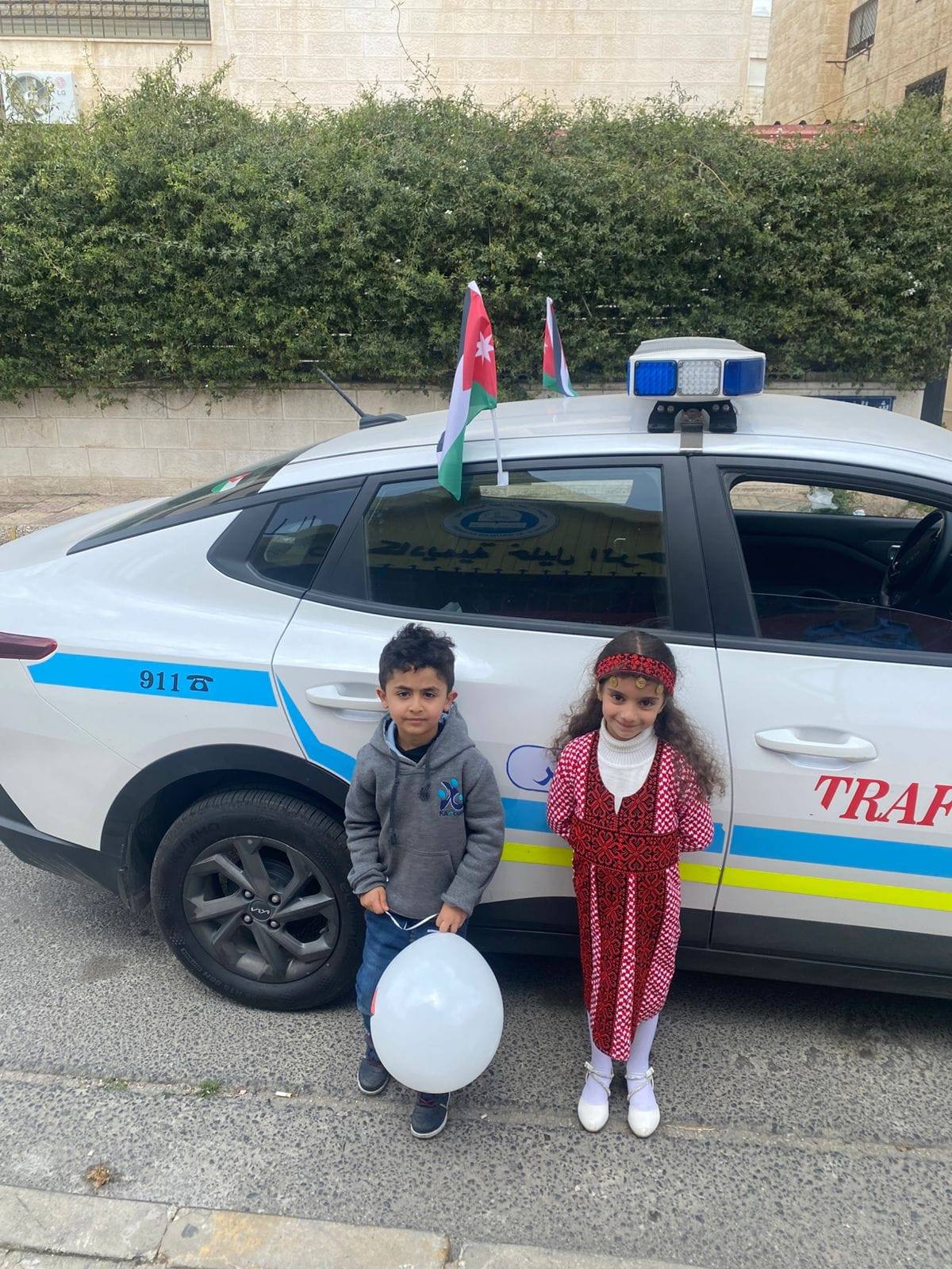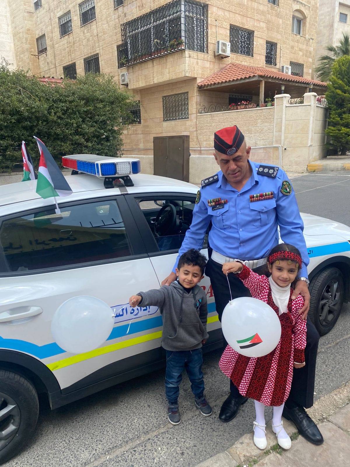 واليوم ما أن دخلت بيت إبني أحمد في عمان، حتى جاء ابنه الذي لا يتجاوز الخامسة من عمره مسرعاً ووجهه ضاحكا مسروراً، ليريني صور مشاركته بيوم العلم وصوره مع رجال الأمن وكيف ركب معهم بالسيارة وكيف تعاملوا معه.
