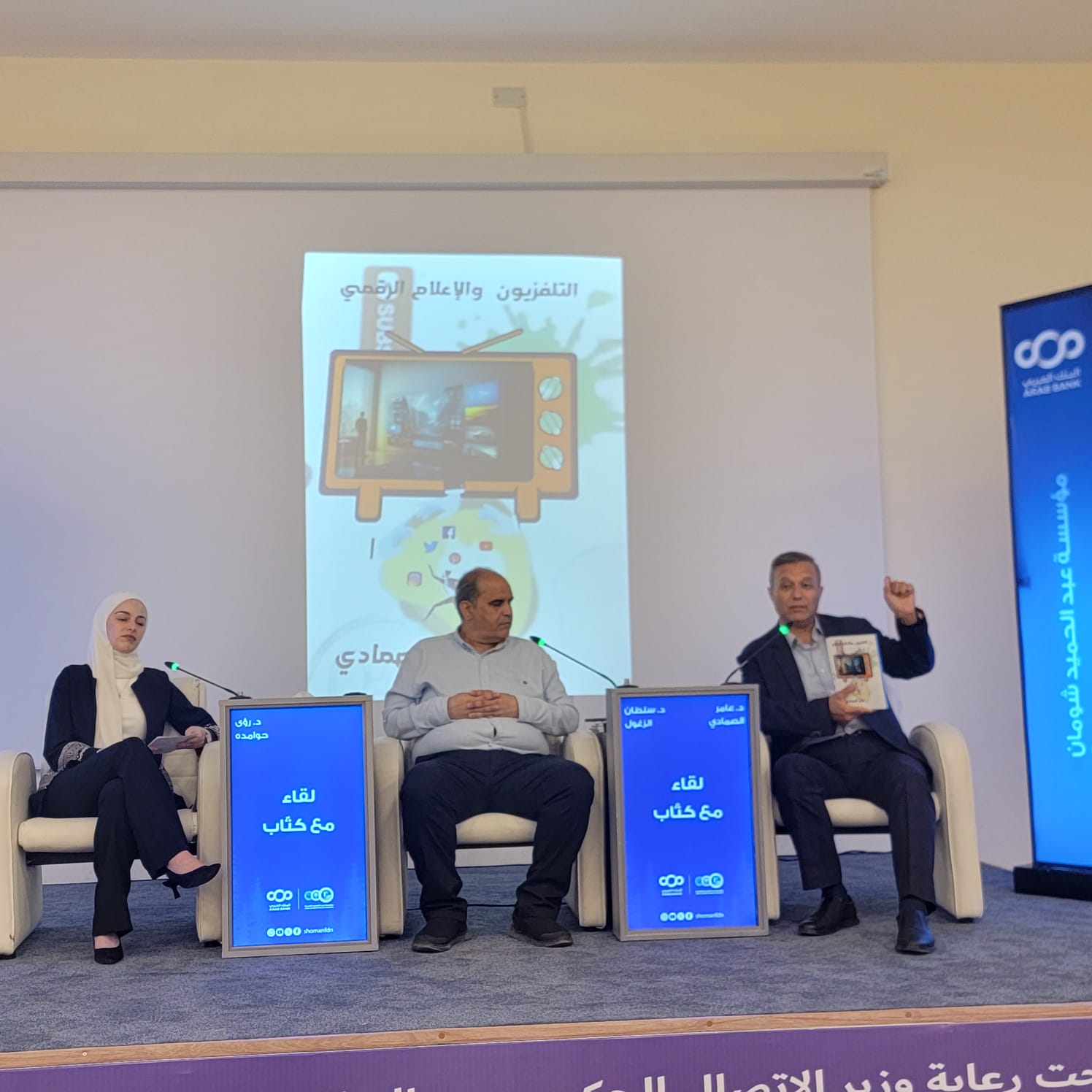 استضافت مؤسسة عبدالحميد شومان الاعلامي الدكتور عامر الصمادي ضمن اسبوعها الثقافي الذي تقيمه في محافظة عجلون يوم امس الجمعة في امسية ثقافية للحديث عن مؤلفه الاخير (اعلاميون في سماء الاردن ) بمشاركة الناقد الدكتور سلطان الزغول،