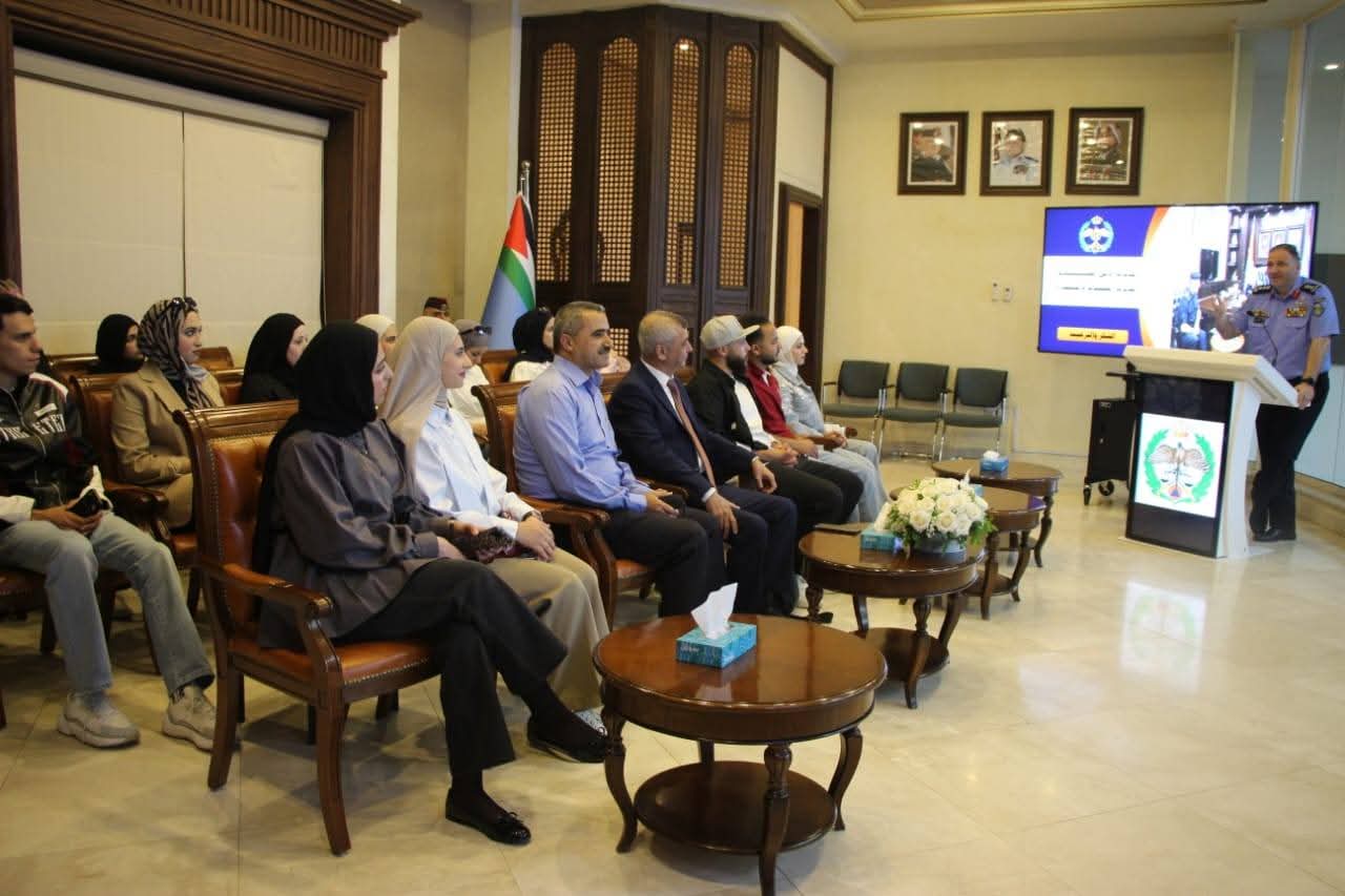 طلبة “الحقوق” في جامعة عجلون الوطنية في زيارة علمية إلى مديرية الأمن العام