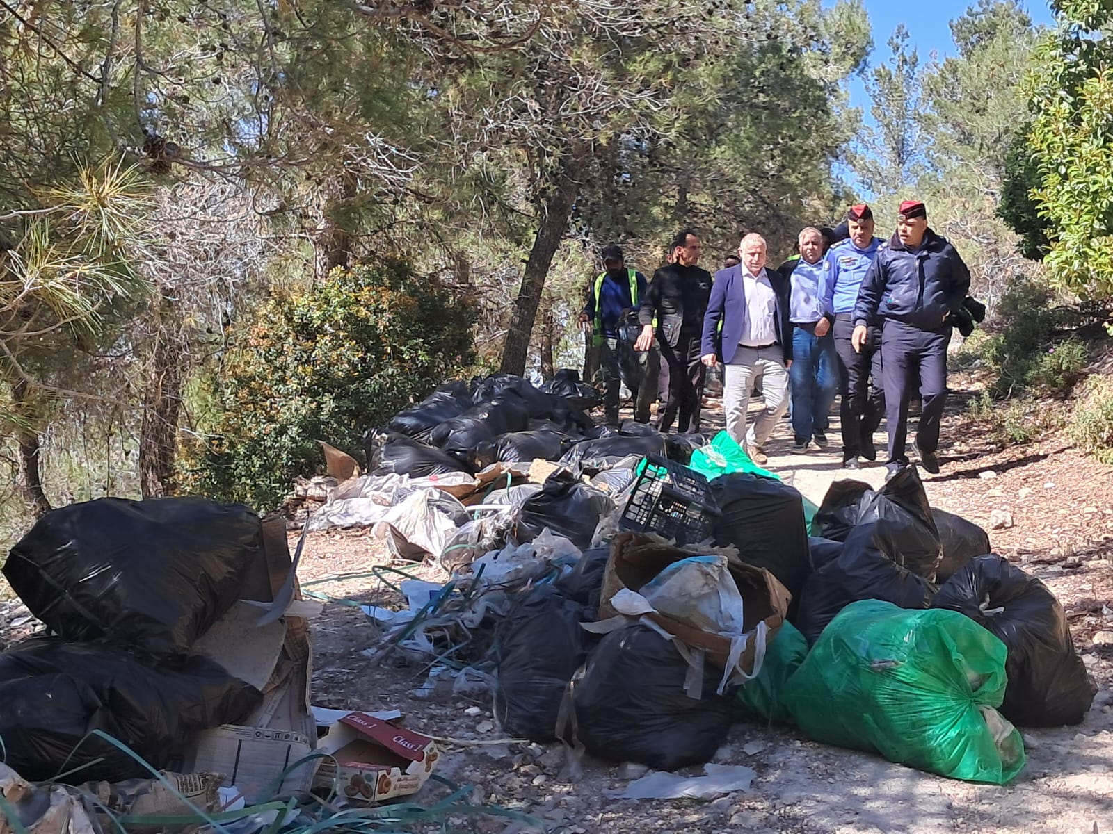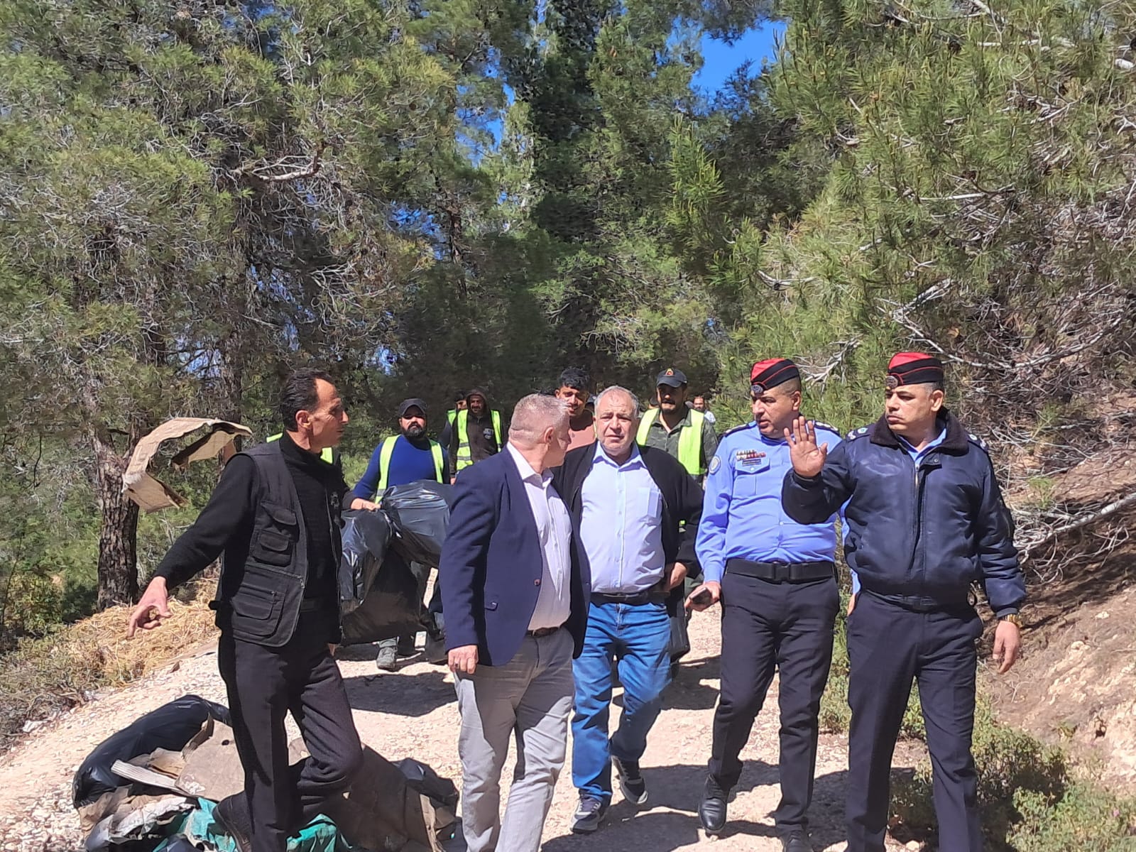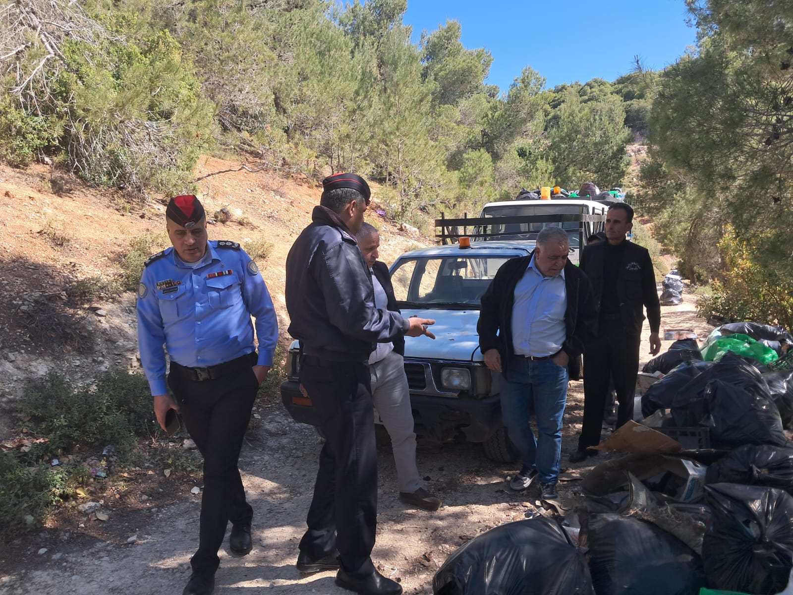 فقد تواجد في المواقع مع كوادر قسم النظافة والبيئية من مجلس الخدمات المشتركة رئيس فرع الادارة الملكية الرائد مراد النمراوي ورئيس مجلس الخدمات المشتركة المهندس وليد درادكه ومدير البيئية المهندس إياس المومني والملازم الاول قتيبه عدنان حيث قامت كوادر المجلس بإزالة كميات كبيرة من النفايات ومخلفات البناء والطمم التي تم وضعها من قبل مجهولين بصورة تشكل مظهر غير حضار ضار بالبيئة الطبيعية .
