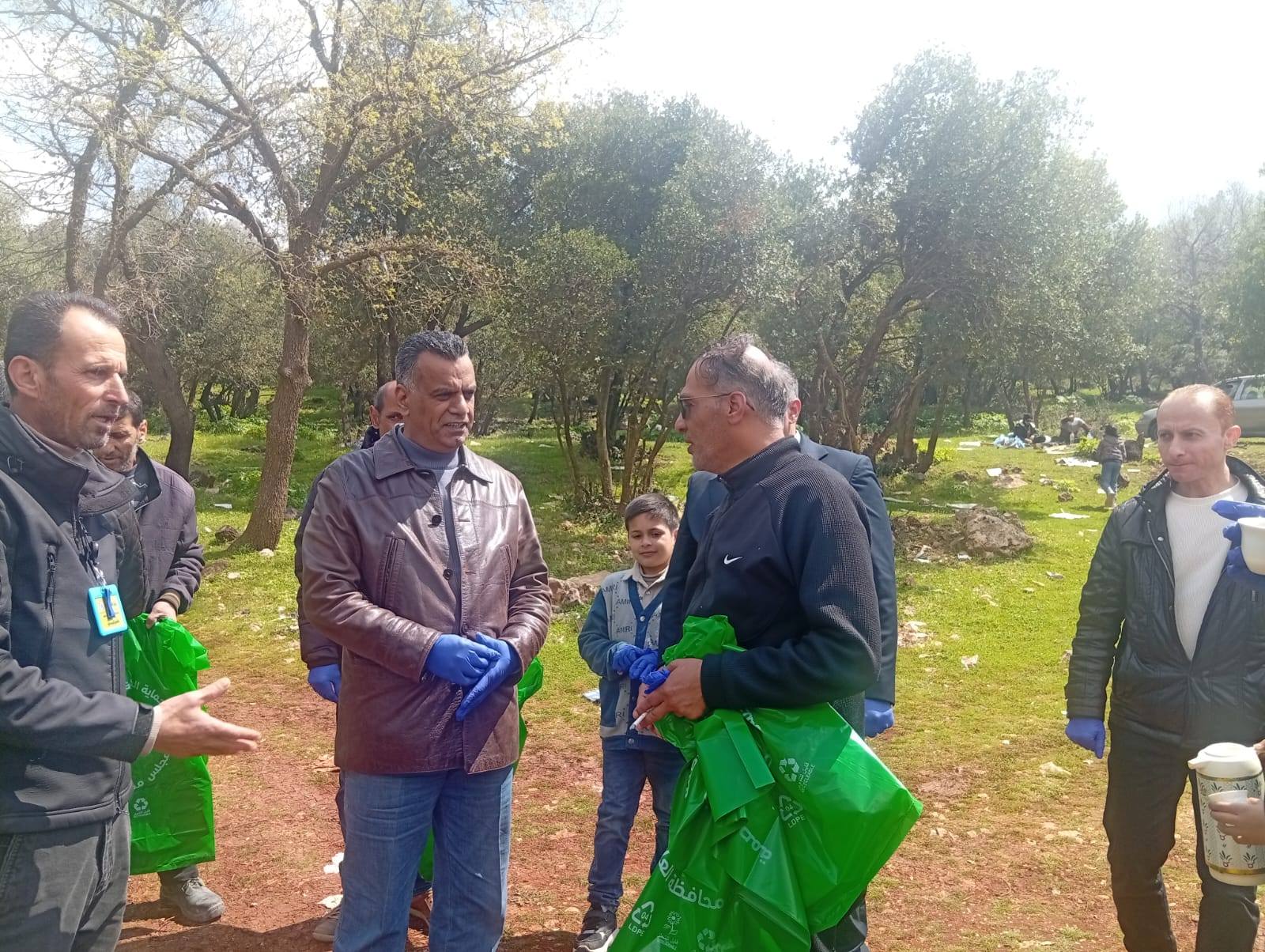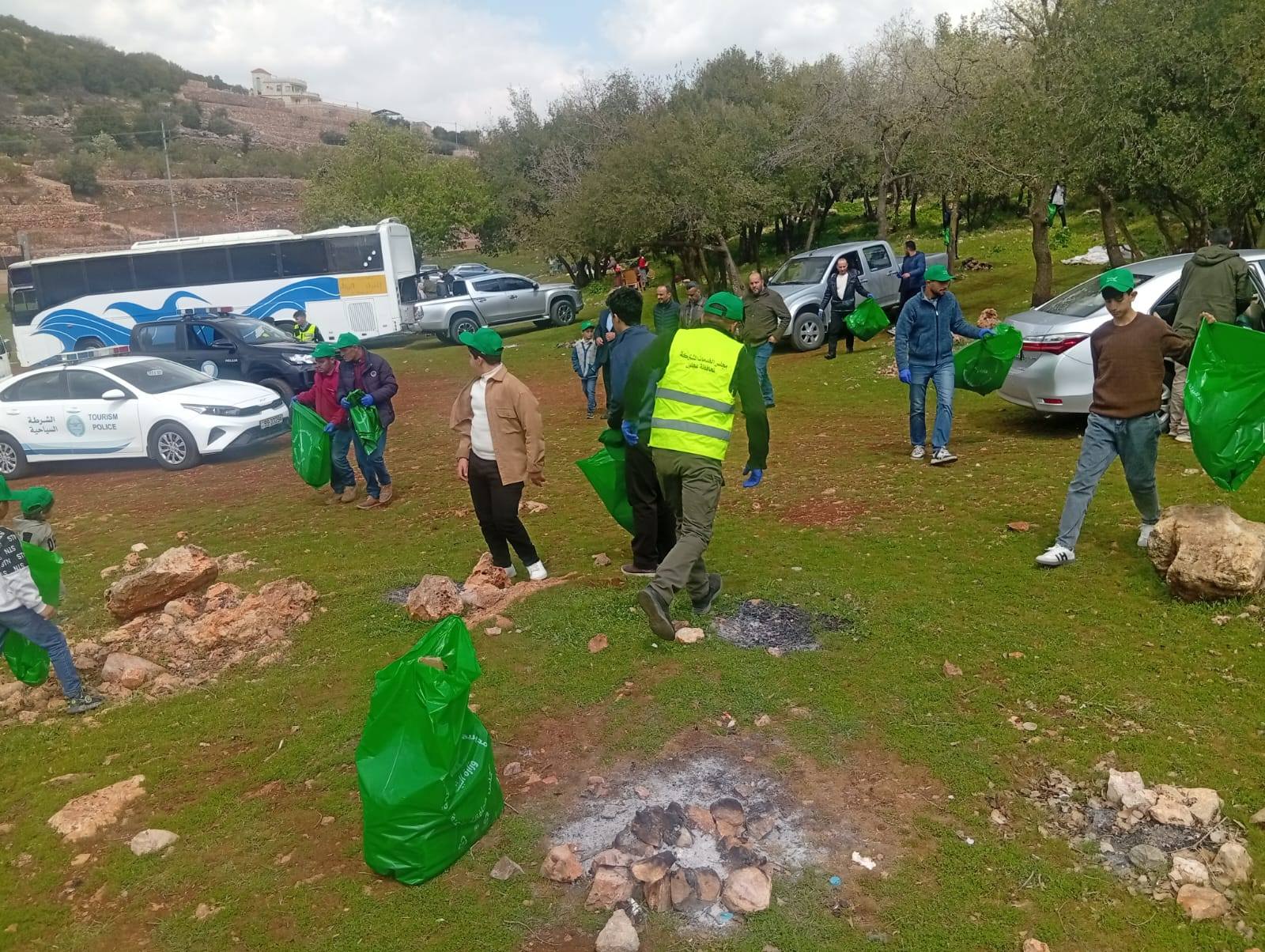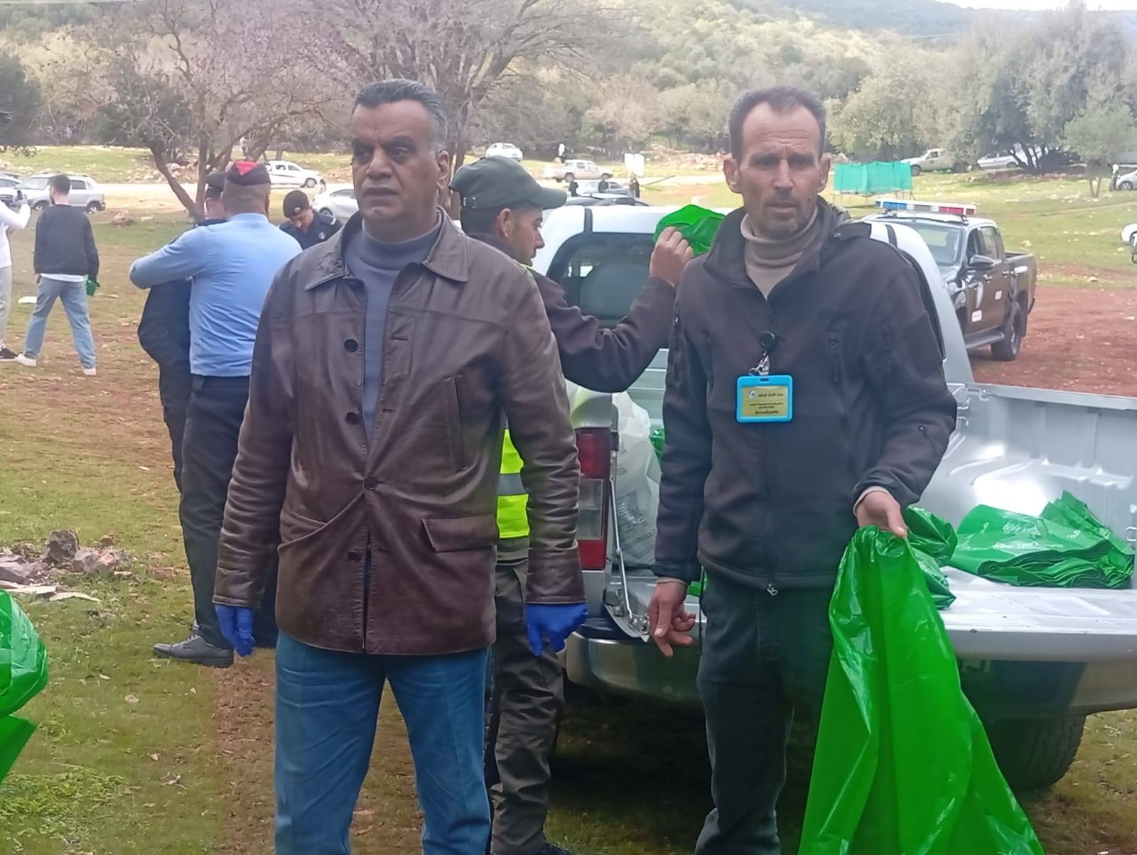 عجلون : الحاكمية الادارية والبيئة تنفذان حملة للنظافة وتوزعان أكياس نفايات على المتنزهين والمركبات .