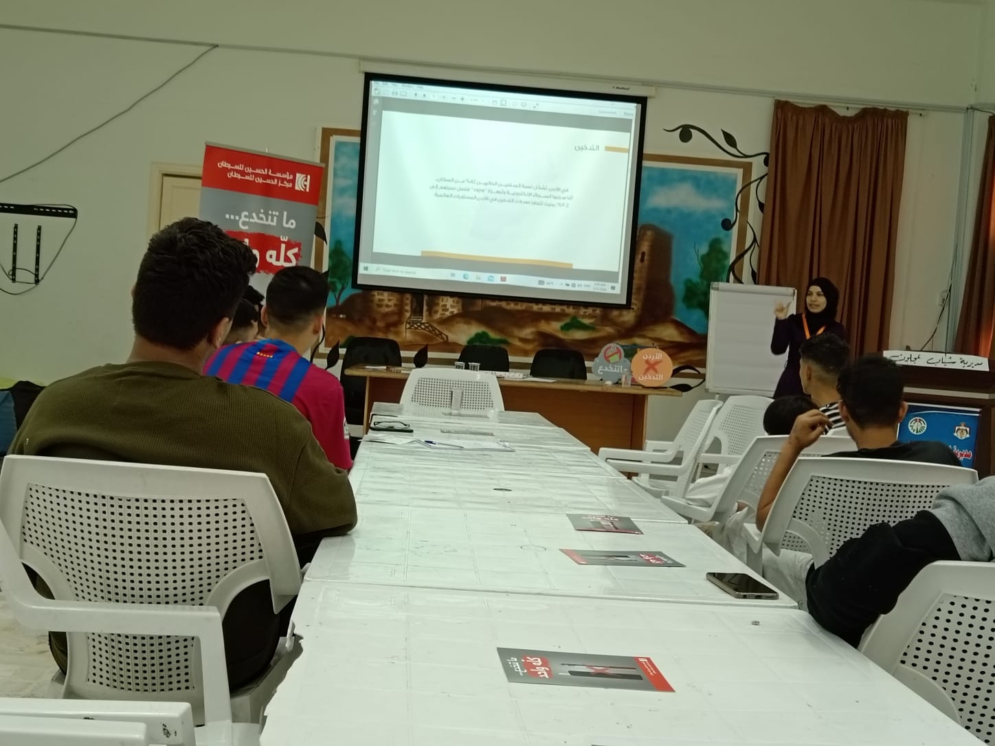 نظم مركز شباب عجلون النموذجي وبالشراكة مع مؤسسة الحسين للسرطان جلسة تفاعلية توعوية بعنوان “الوقاية من التدخين” وذلك ضمن حملة ( ما تنخدع … كلّه واحد ) ، بمشاركة ١٥ شابا ضمن الفئة العمرية ١٥_١٧ عاما .