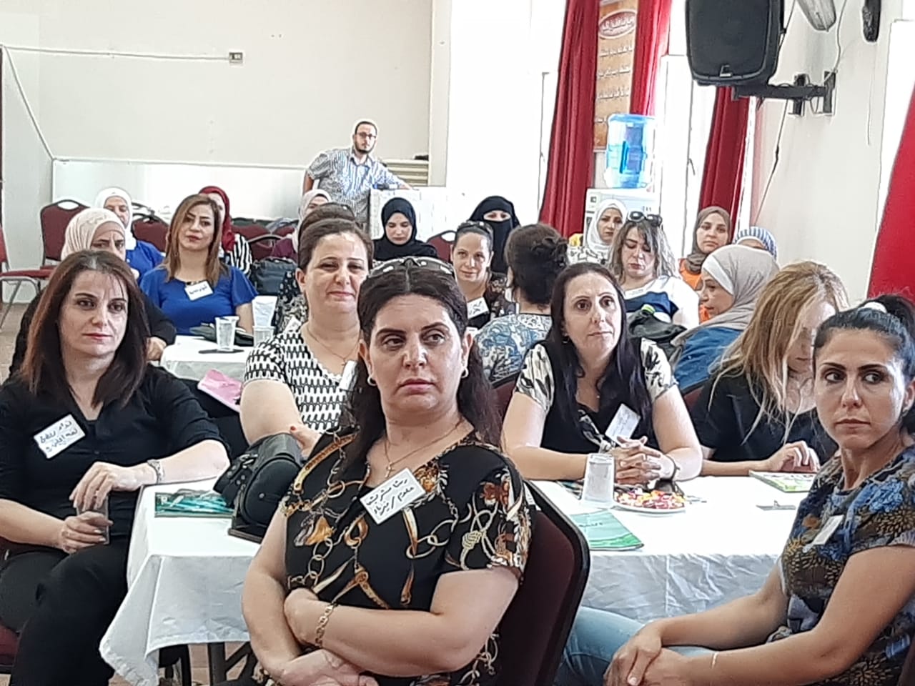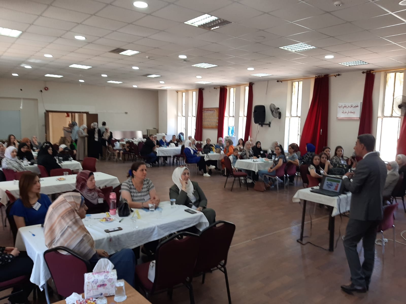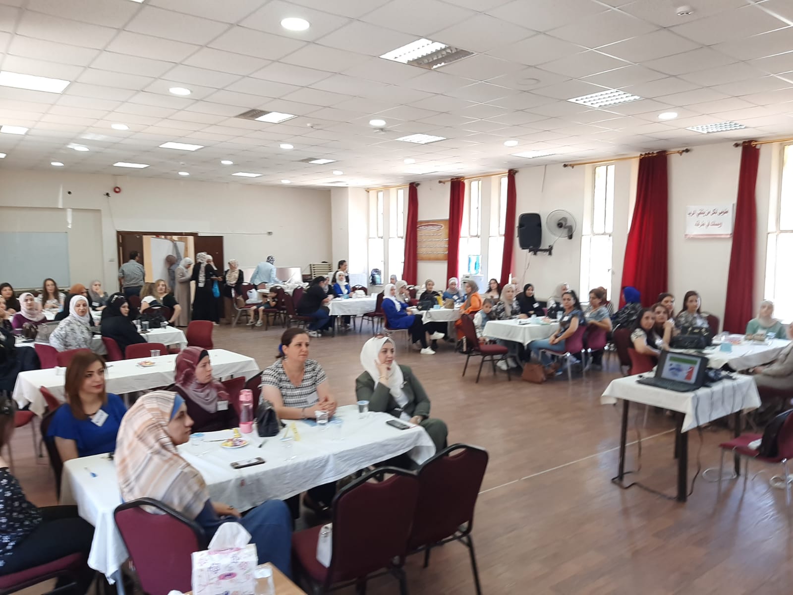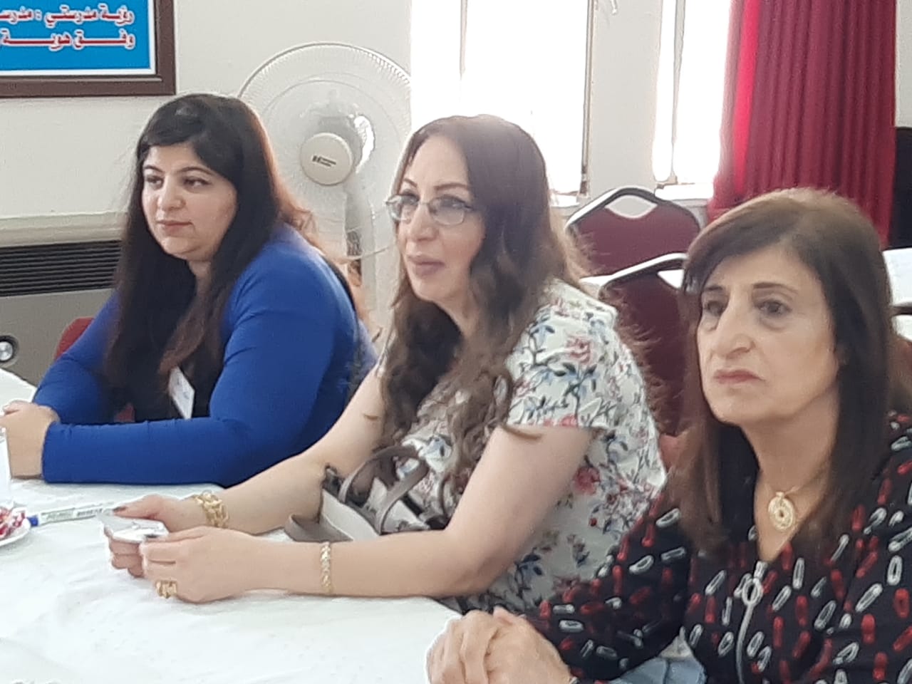 وكانتا منسقة اللجنة نوازش القرشي وعضو اللجنة مديرة مدرسة عزالدين اسامه الاساسية رنا الصمادي قد رحبتا بالحضور وتعريف المعلمات المشاركات باللجنة واهدافها وأهداف البرنامج التدريبي .