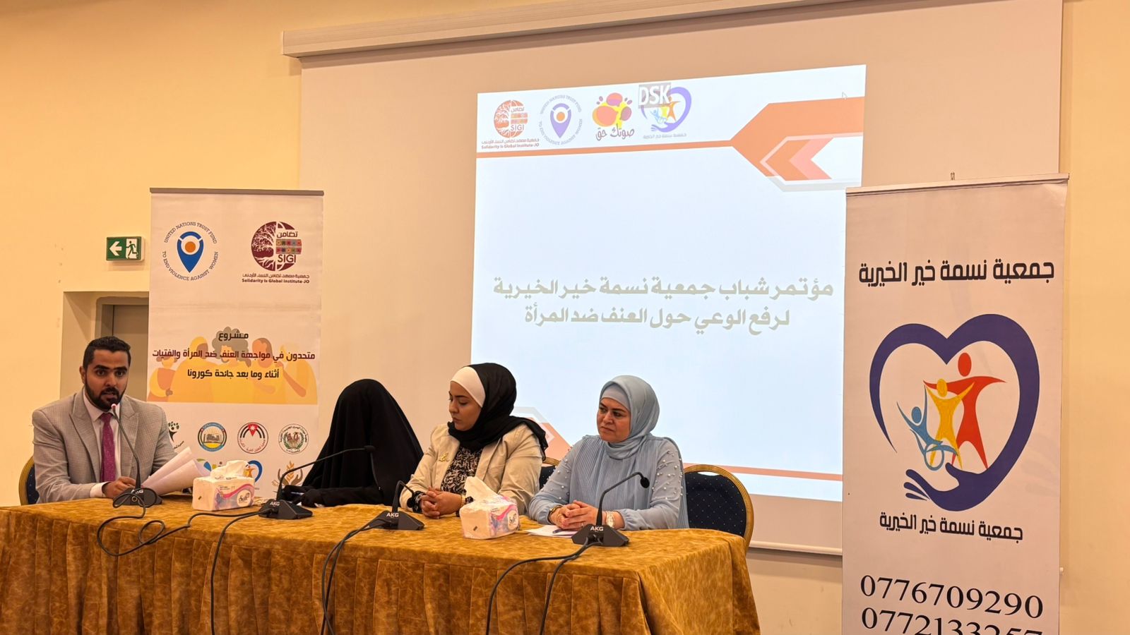 نظمت مبادرة صوتك حق مؤتمرًا شبابيًا توعويًا تحت عنوان: شباب جمعية نسمة الخير الخيرية لرفع الوعي حول العنف ضد المرأة، ضمن إطار مشروع متحدون لمواجهة العنف ضد النساء أثناء وما بعد جائحه كورونا الممول من صندوق الأمم المتحدة الاستئماني المنفذ من قبل جمعية معهد تضامن النساء وبشراكه مع جمعية نسمة خير الخيريه