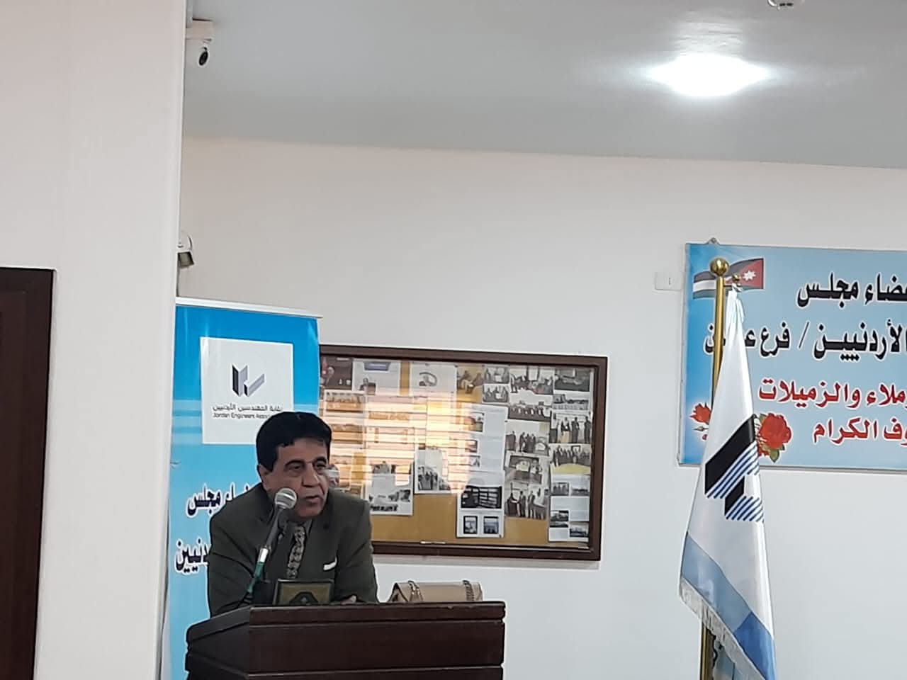 من جانبه اكّد مسؤول الفرع المهندس علاء ابو جلبان بأن نقابة المهندسين الأردنيين هي بيت المهندسين الكبير، ومظلتهم الجامعة، وشريكهم في مسيرتهم المهنيّة والعلميّة والعمليّة. وتطرّق لابرز الخدمات التي تقدّمها النقابة والفرع، لافتاً الى اهمية الانخراط بالعمل النقابي والمهني.