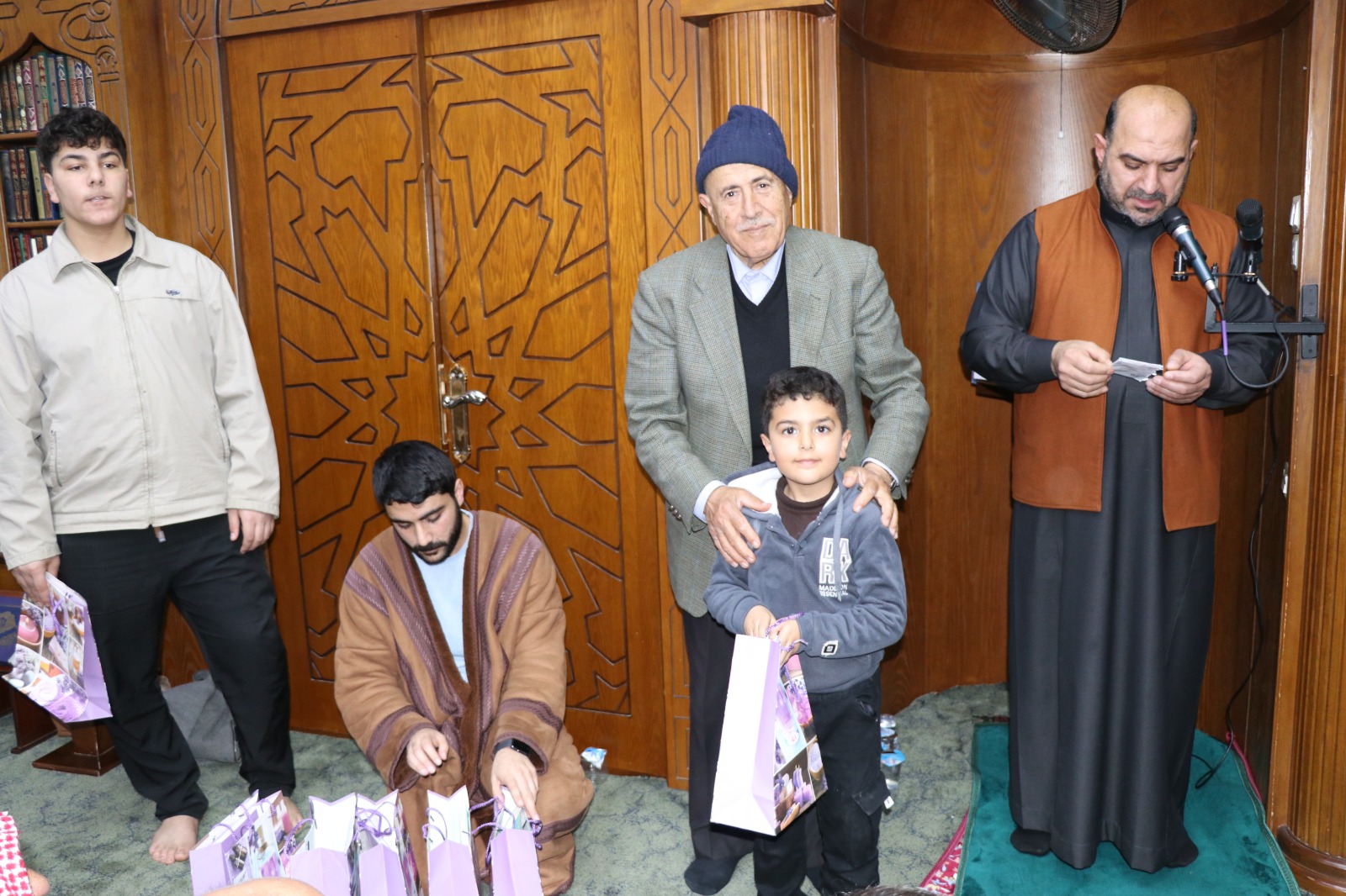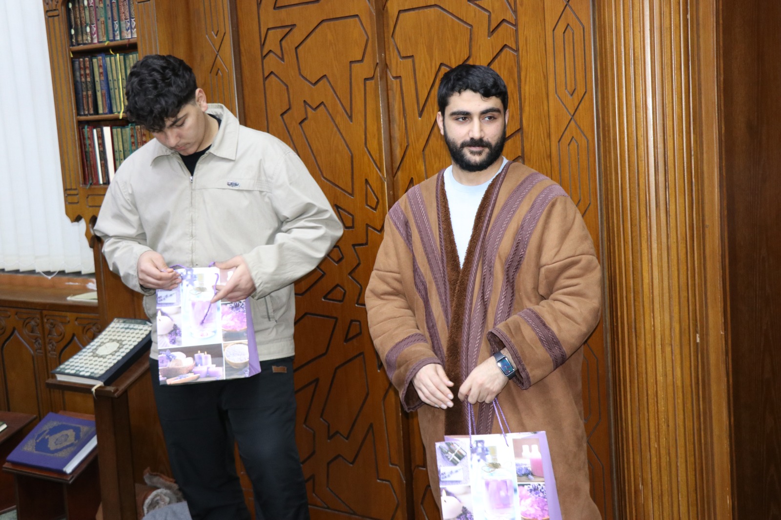 كما جرى خلال اللقاء تكريم عدد من طلبة الدار المتميزين، حيث مُنحوا جوائز نقدية تشجيعية تقديرًا لجهودهم في تعلم القرآن الكريم والمواظبة على حلقاته، وتحفيزًا لهم على مواصلة طريق العلم والقرآن.