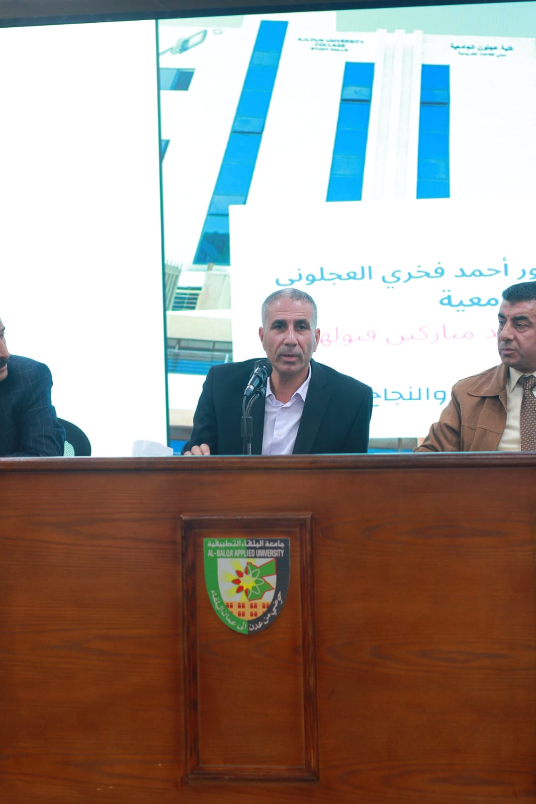 وفي بداية اللقاء الذي بدأ بالسلام الملكي وآيات من القرآن الكريم قرأ الجميع الفاتحة على أرواح شهداء غزة ، ورحب عميد الكلية الأستاذ الدكتور وائل الربضي بالطلبة المستجدين في الكلية ونقل تحيات الأستاذ الدكتور أحمد فخري العجلوني رئيس جامعة البلقاء التطبيقية للطلبة المستجدين وهنأئهم على التحاقهم بالجامعه وإنضمامهم لأسرة جامعة البلقاء التطبيقية وانتقالهم إلى مرحلة دراسية جديدة أساسها العلم والتعلم ومتمنيا لهم التقدم والنجاح .