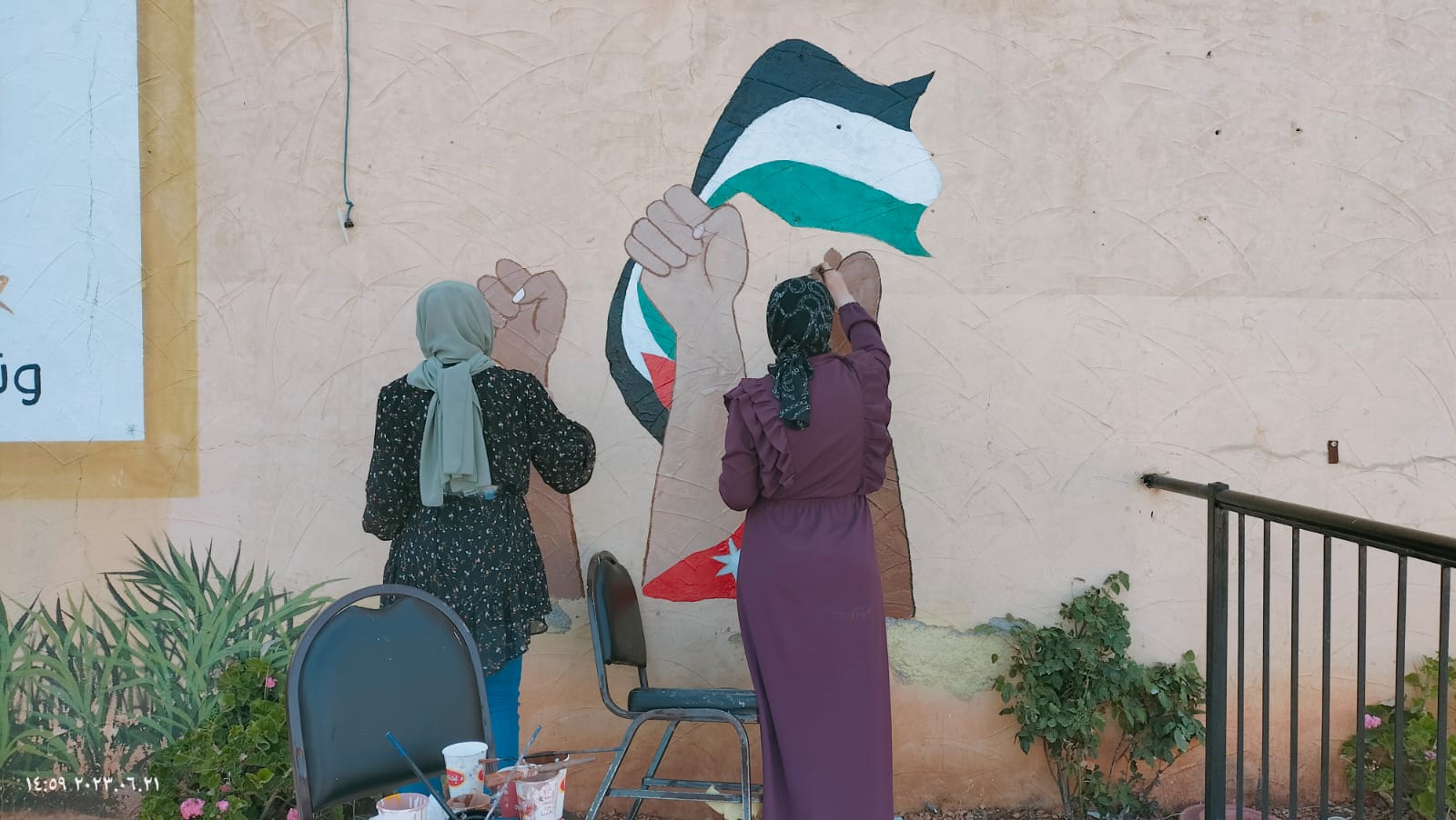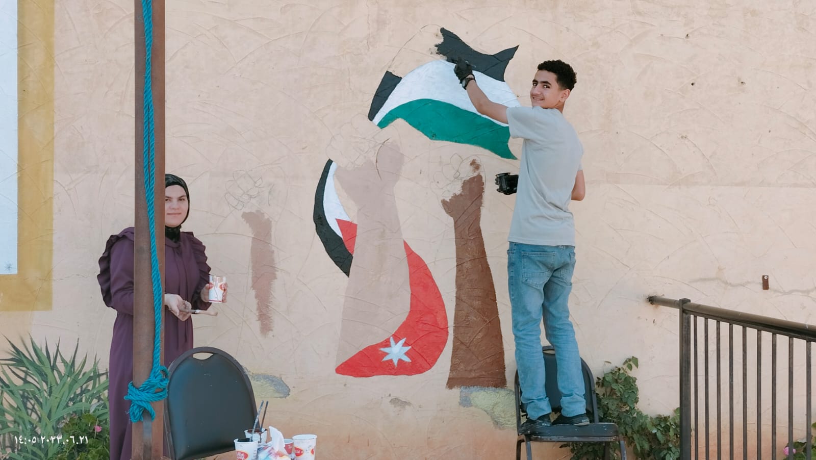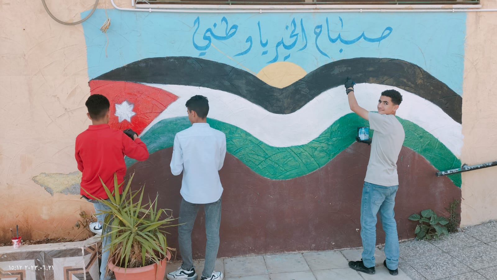 نفذ فرسان وفارسات جائزة ولي العهد حقق بحضور مدير مدرسة الملك عبدالله الثاني للتميز حسين المومني وضابط ارتباط مبادرة حقق في عجلون سامر القضاة والمدرب الدكتور أحمد الجبالي والمعلمة عائشة الجبالي من مدرسة عين البستان الثانوية للبنات ( جدارية الاستقلال ) بمناسبة عيد الاستقلال والمناسبات الوطنية بالتشارك مع نخبة من المتطوعين والمتطوعات من فرسان وفارسات الهيئة العامة لمبادرة “حقق” وطالبات مدرسة عين البستان الثانوية للبنات.