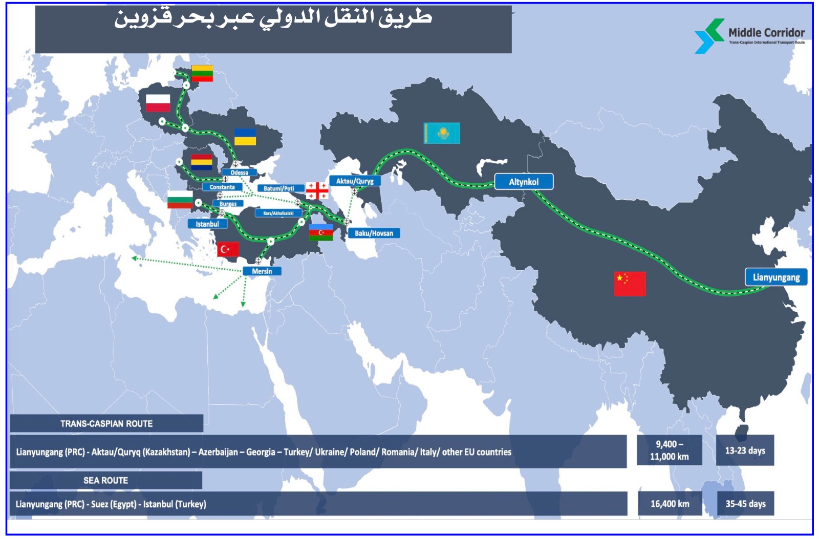 وقد تم تطوير آليات محددة لدعم المشاريع الاستثمارية وحماية الاستثمارات، حيث تم منح 27 من ممثلي قطاع الأعمال الذين يخططون لتنفيذ 31 مشروعاً رئيسياً في المنطقة شهادات مشاركة في مشروع الممر الأخضر. وكان من بين هؤلاء المشاركين رواد أعمال محليون ورجال أعمال دوليون من الصين وروسيا وتركيا والولايات المتحدة، مما سلط الضوء على الاهتمام العالمي بالمشهد الاستثماري المتطور في كازاخستان.