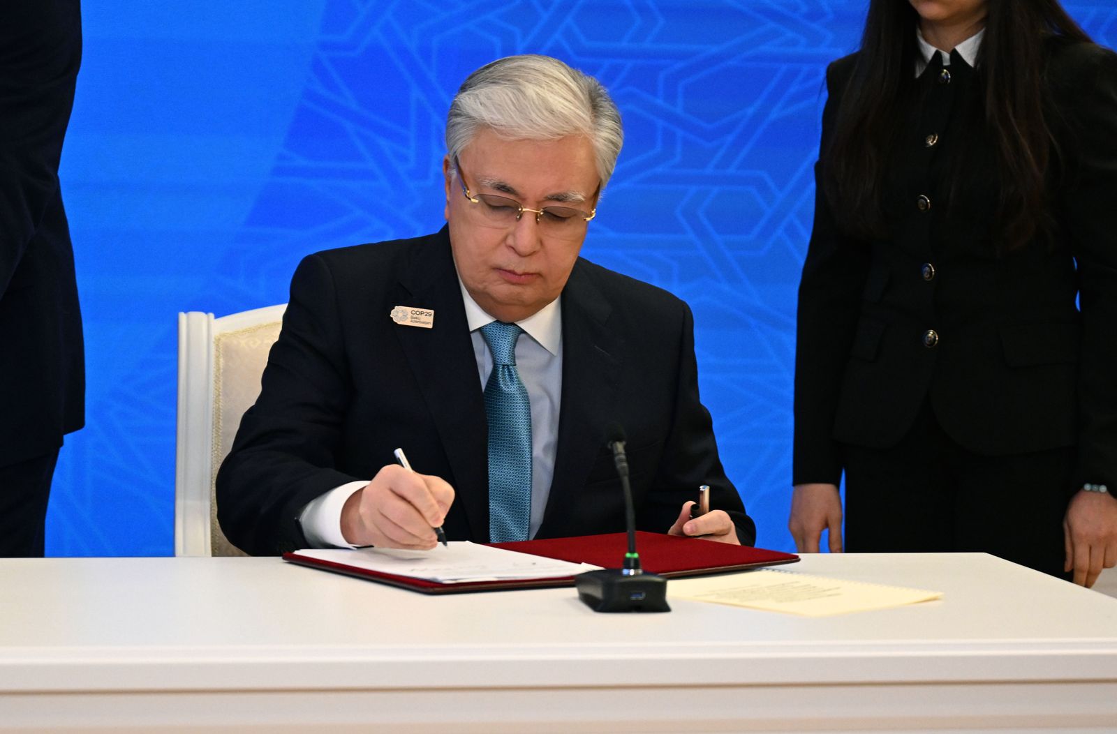 أستانا – باكو: وقع رؤساء كازاخستان وأذربيجان وأوزبكستان، قاسم جومارتتوكاييف وإلهام علييف وشوكت ميرزيوييف، اتفاقية شراكة استراتيجية بشأن تكامل أنظمة وإنتاج ونقل الطاقة الخضراء في البلدان الثلاثة، وذلك على هامش قمة المناخ العالمية COP 29 التي انعقدت في باكو عاصمة أذربيجان، فيما أكد الرئيس توكاييف بأن الطاقة “الخضراء” تشكل أولوية، والتوقيع صفحة جديدة في تاريخ الرغبة المشتركة في التنمية المستدامة.