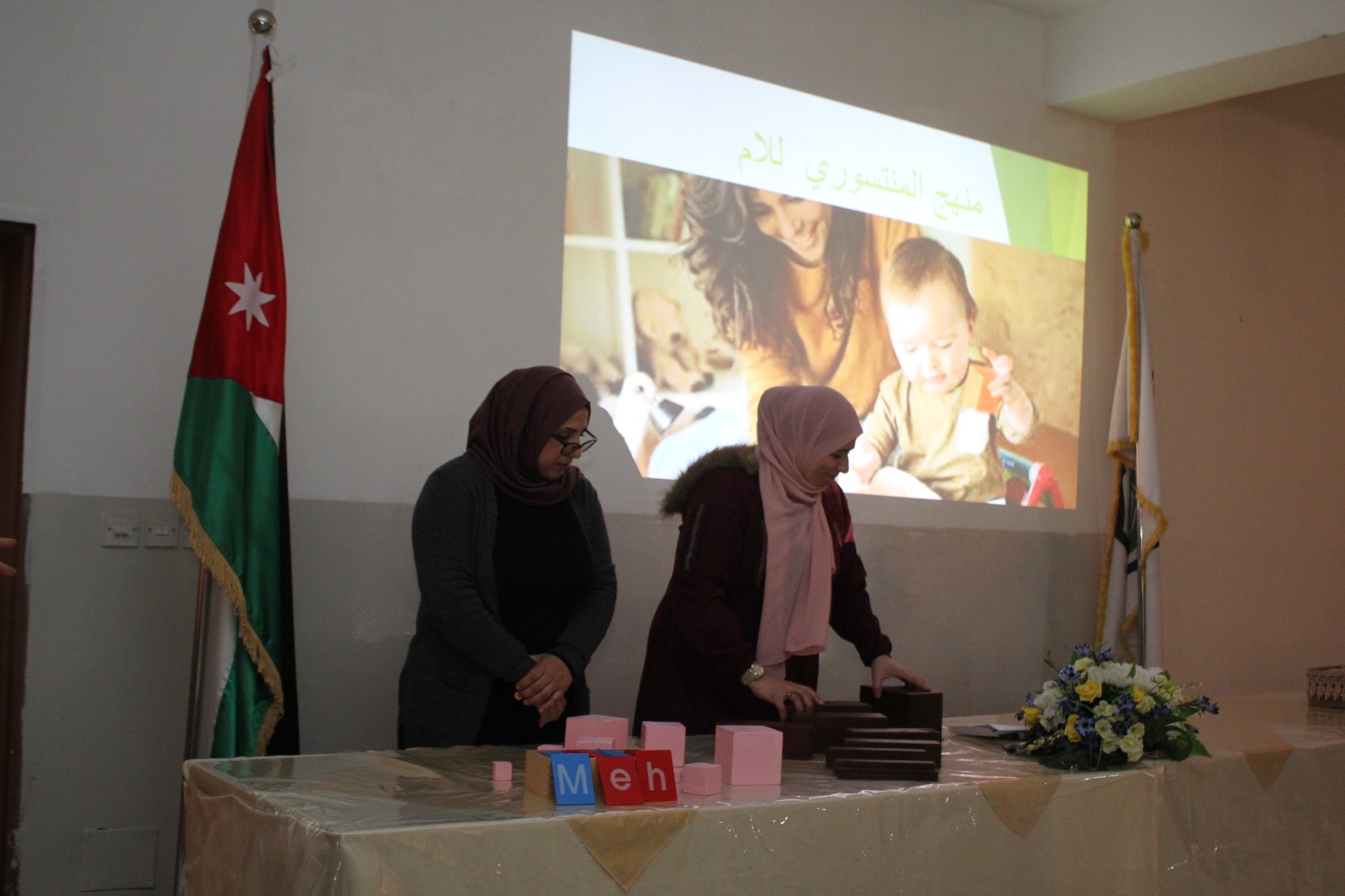 واشتملت الورشة التي قدمتها المدربة الدولية السيدة منار أبو رمان على عروض توضيحية وأنشطة تفاعلية للتمييز بين التعليم التقليدي وبرنامج منتسوري ومحاولة الدمج بينهما وشارك فيها الطلبة الحضور.