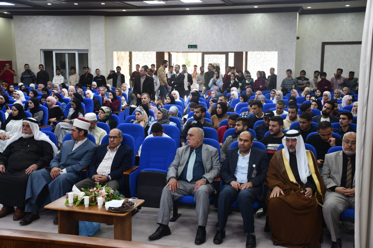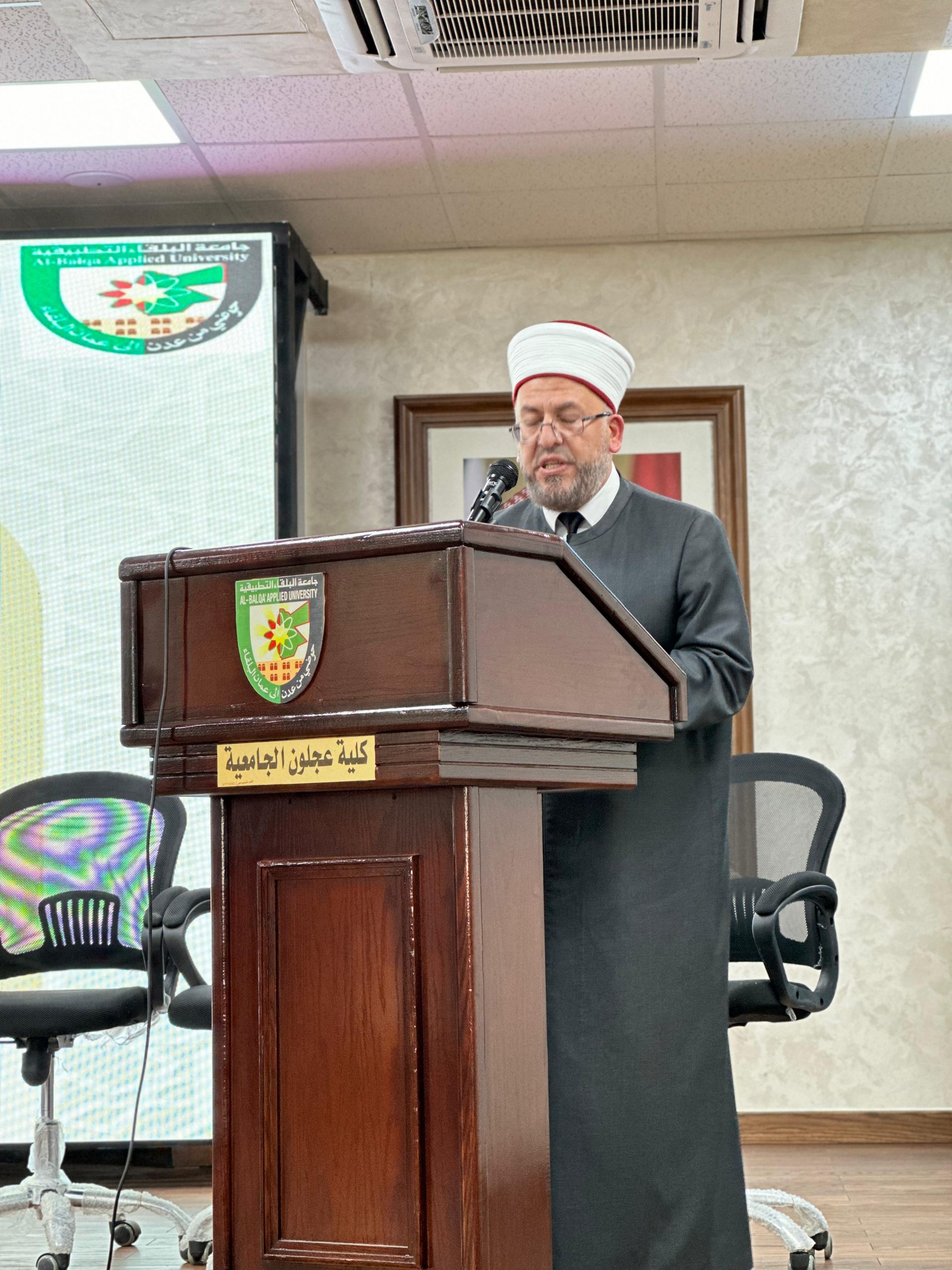 مندوبا عن مفتي عام المملكة سماحة الشيخ عبد الكريم الخصاونه رعى المفتش العام لدائرةالأوقاف سماحة الشيخ الدكتور صفوان عضيبات الإحتفال الذي نظمته كلية عجلون الجامعية /جامعة البلقاء التطبيقية بمناسبة ذكرى المولد النبوي الشريف بحضورعميد كلية عجلون الجامعية الأستاذ الدكتور وائل الربضي وفضيلة الدكتور محمد بني طه مفتي عجلون وبعض مدراء الدوائر الحكومية ومساعدي العميد وعدد من أعضاء الهيئتين الإدارية والتدريسية وعدد كبير من طلبة الكلية في قاعه الشهيد محمد العزام .