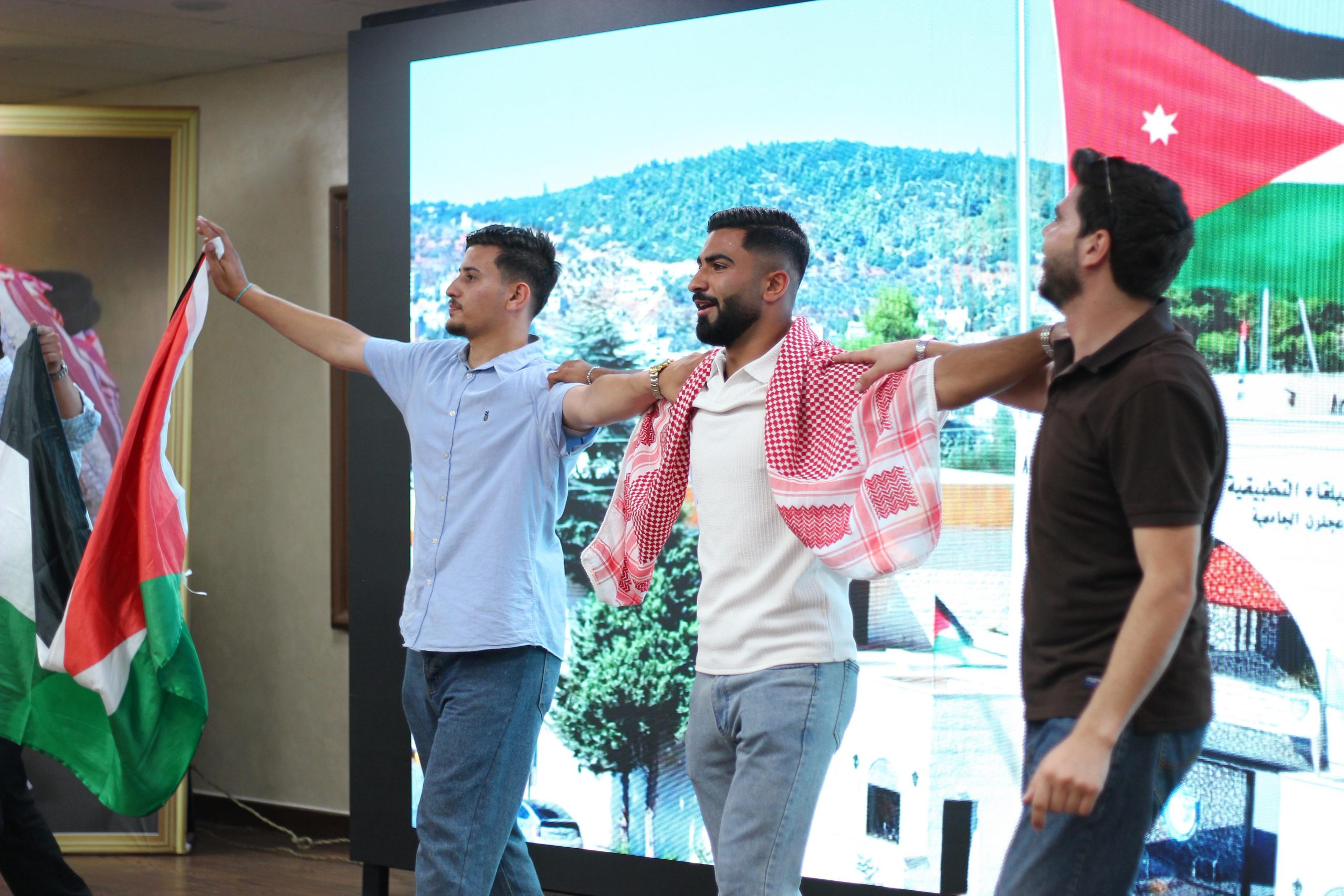 واختُتمت الفعالية بلوحة فنية وطنية أبدع فيها الطلبة برسم العلم الأردني على أيديهم، وتقديم عروض للدبكة الشعبية، عبّرت عن عمق الارتباط بالوطن، والاعتزاز بالهوية الأردنية