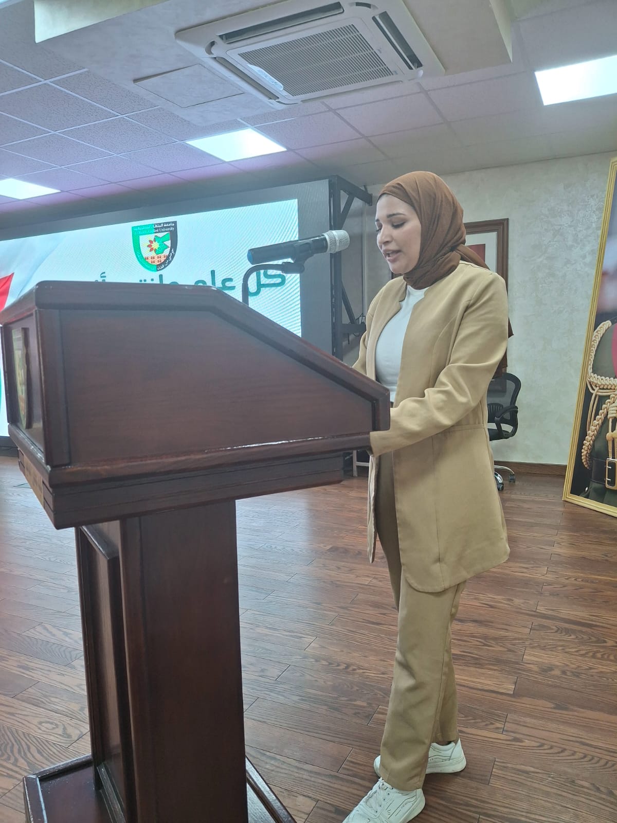 كما قدّم الشاعر ياسر أبو طعمة مشاركة شعرية مميزة، ألقى خلالها كلمات مدح وعرفان بحق عمال الوطن والأمن والحماية وجميع العاملين في الكلية ، عبّر فيها من خلال أبيات شعرية صادقة عن تقديره لجهودهم الكبيرة ودورهم الحيوي في بناء المجتمع وصون بيئته، نالت استحسان الحضور وأضفت طابعًا وجدانيًا مميزًا على الفعالية.
