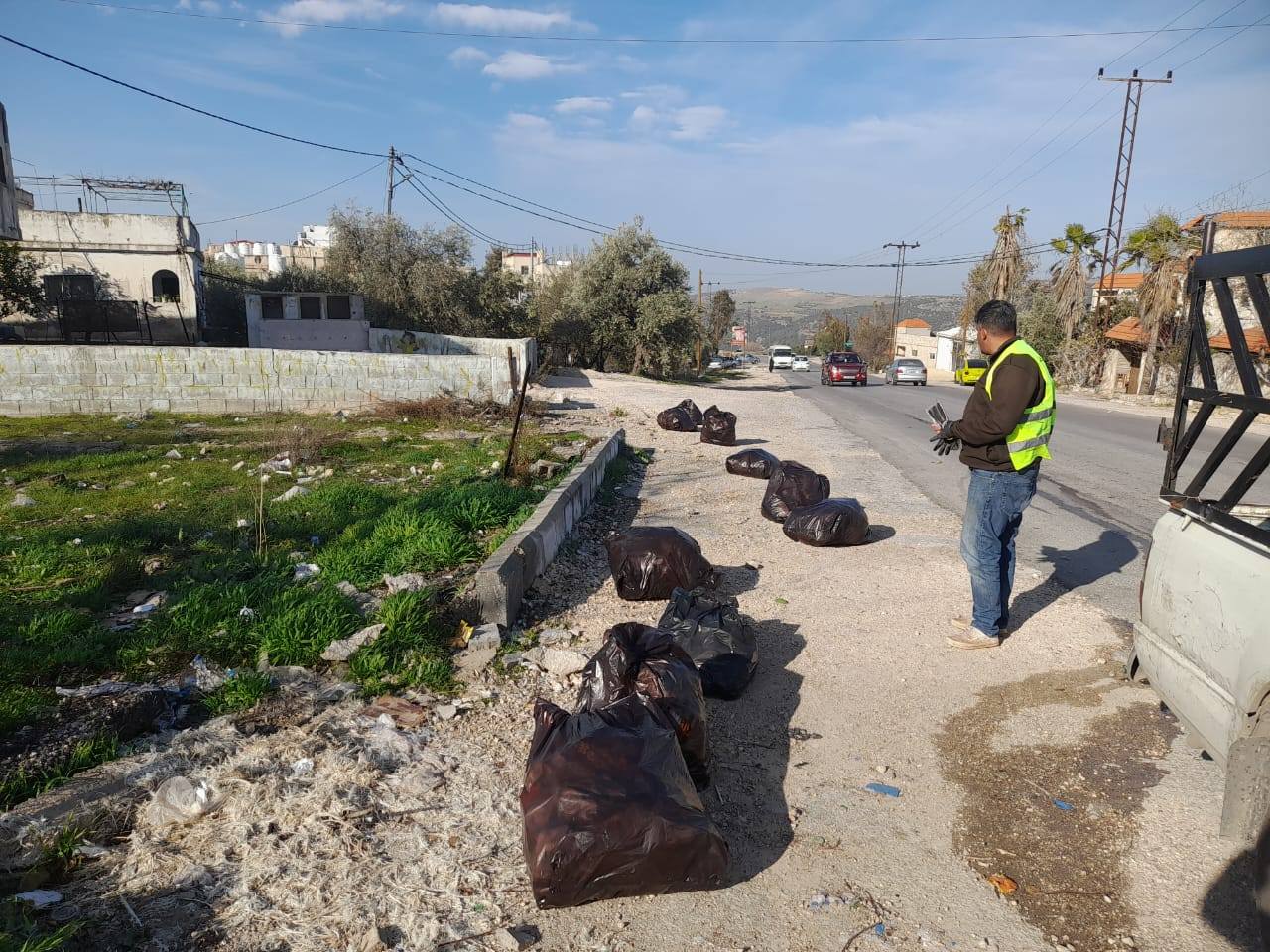 كما تم تخصيص فريق عمل على جمع أكياس النفايات بعد العمل ونقلها إلى المحطة التحويلية.، حيث جرت هذه الأعمال بإشراف مباشر من مراقب الميدان خلدون المومني والمراقب صالح عنيزات.
