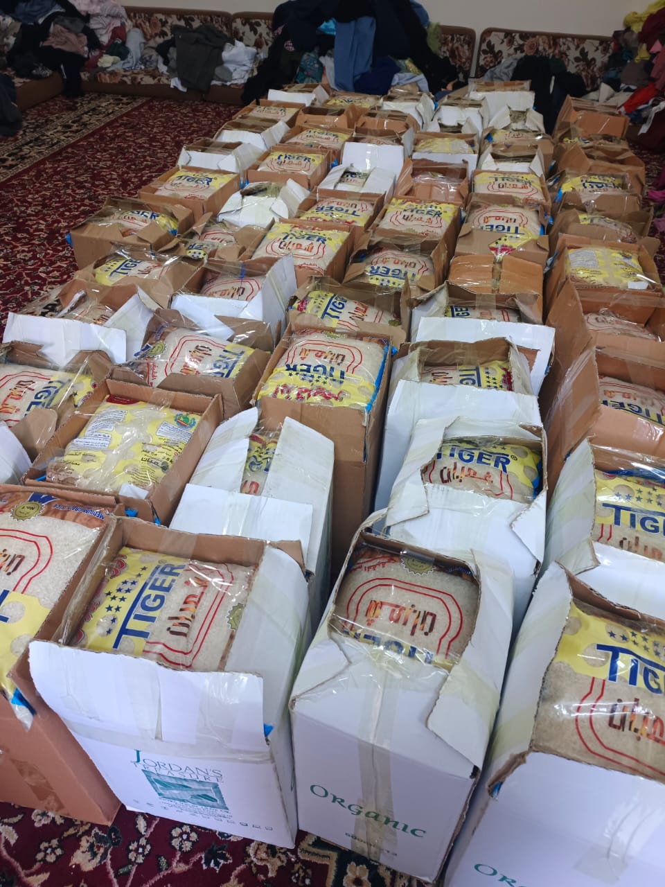 برعاية فضيلة مدير أوقاف محافظة عجلون صفوان محمود القضاة ورئيس قسم الزكاة محمد علي المومني وبحضور رئيس لجنة زكاة وصدقات عنجرة واصف الزغول وأمين الصندوق وأعضاء اللجنة نفذت لجنة زكاة وصدقات عنجرة مبادرة إنسانية لتوزيع طرود غذائية وملابس شتوية على 57 أسرة محتاجة في بلدة عنجرة.