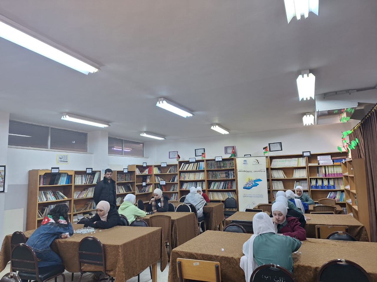 نظم مشروع لجان الدعم المجتمعي المنفذ من قبل الصندوق الاردني الهاشمي بدعم من المفوضية السامية لشؤون اللاجئين بالتعاون مع مديرية التربية والتعليم / مدرسة عبين الثانوية الجديدة اليوم بطولة للشطرنج لطالبات مدرسة عبين الثانوية الجديدة بفترتيها الصباحية والمسائية ( طالبات سوريات واردنيات ) حيث شارك في البطولة 12 طالبة من المرحلة الأساسية العليا .