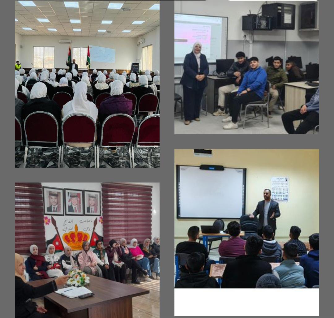 نظّم مركز شباب وشابات عنجرة النموذجي، ومركز شباب وشابات عجلون النموذجي ، ومركز شباب وشابات الهاشمية النموذجي ، لقاءً تعريفيًا توعويًا بدور المراكز الشبابية وبرامجها، وآلية الانتساب والاستفادة من منصة البرامج التدريبية، في مدارس: عنجرة الثانوية للبنين بمشاركة 35 طالبا ، مدرسة الملك الناصر بمشاركة 100طالبا ، مدرسة حي سكرين الثانوية للبنات بمشاركة 75 طالبة ، مدرسة عجلون الثانوية للبنين بمشاركة 50 طالبا ،ومدرسة عنجرة الثانوية للبنات بمشاركة 70 طالبة ،بالاضافة إلى قاعة مركز شباب وشابات الهاشمية النموذجي بمشاركة 20 شابة من منتسبات المركز .