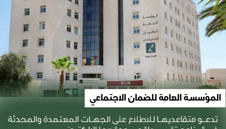 مؤسسة الضمان الاجتماعي تدعو متقاعديها للاطلاع على الجهات المعتمدة والمحدثة في “برنامج تقسيط” عبر موقعها الإلكتروني