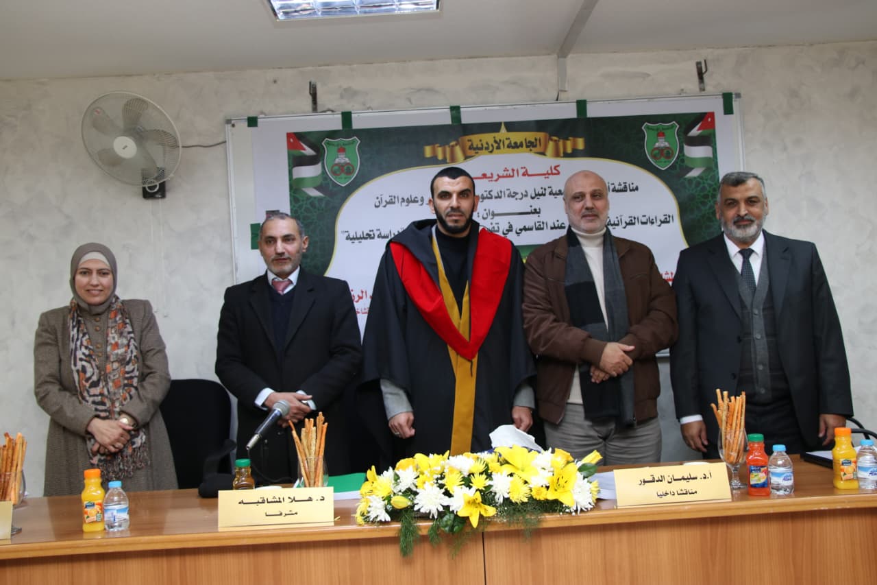تتقدم أسرة وكالة عجلون الاخباريه بأجمل آيات التهنئه والتبريك من فضيلة الشيخ الدكتور سيف سليمان السيوف بمناسبة حصوله على شهادة الدكتوراه في الشريعة الاسلامية من الجامعة الأردنية ،، تخصص التفسير وعلوم القرآن ،، حيث جاءت الإطروحة بعنوان القراءات القرآنية وتوجيهها عند القاسمي في تفسيره محاسن التأويل.