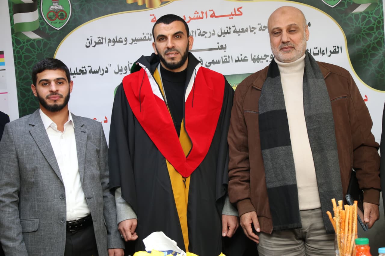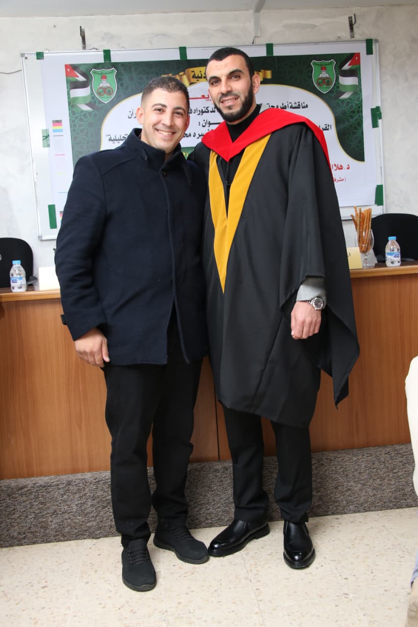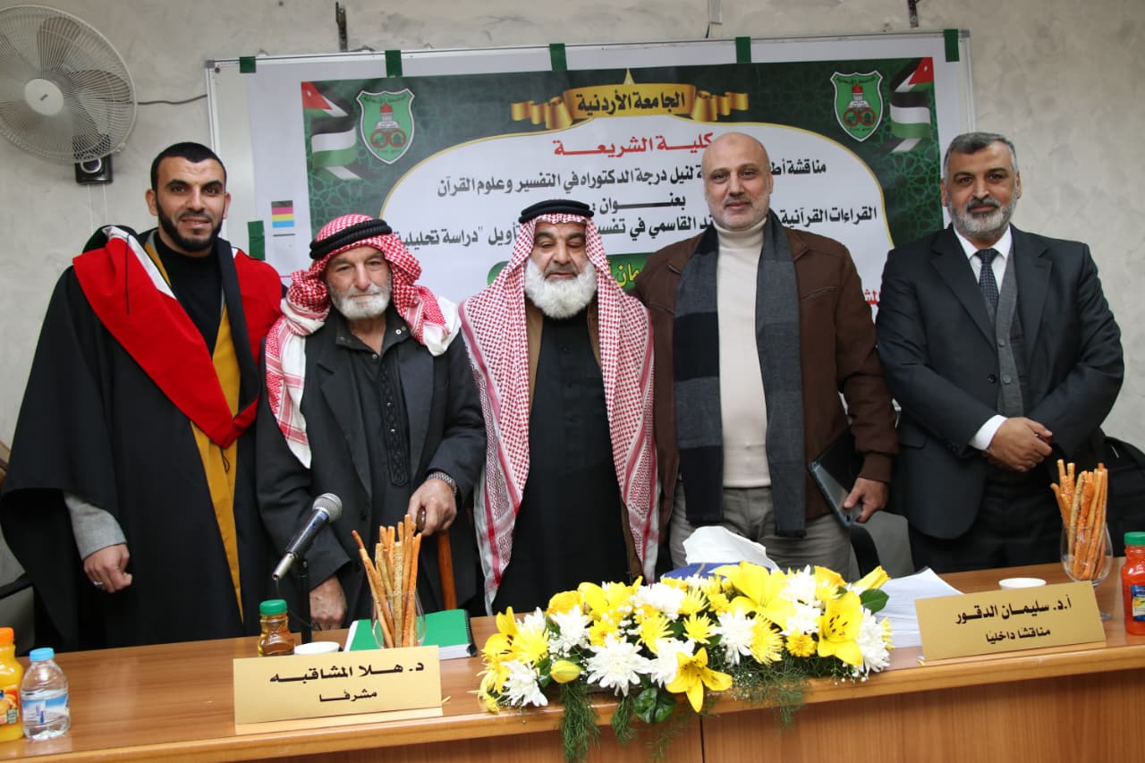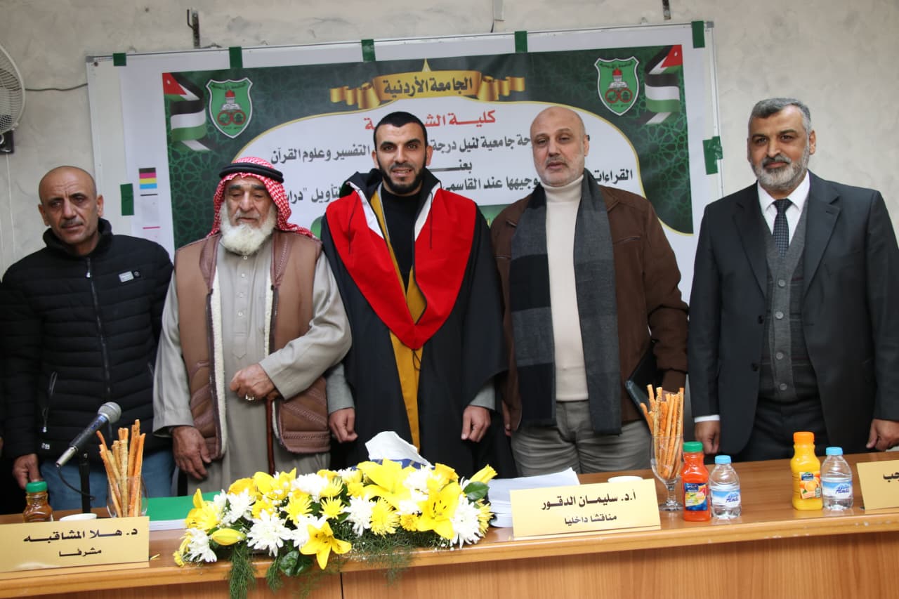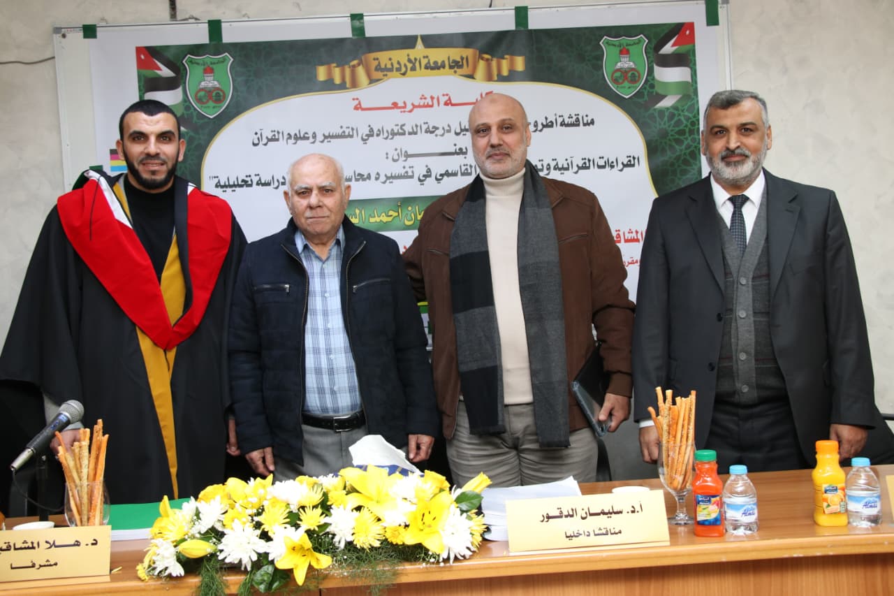 تتقدم أسرة وكالة عجلون الاخباريه بأجمل آيات التهنئه والتبريك من فضيلة الشيخ الدكتور سيف سليمان السيوف بمناسبة حصوله على شهادة الدكتوراه في الشريعة الاسلامية من الجامعة الأردنية ،، تخصص التفسير وعلوم القرآن ،، حيث جاءت الإطروحة بعنوان القراءات القرآنية وتوجيهها عند القاسمي في تفسيره محاسن التأويل.