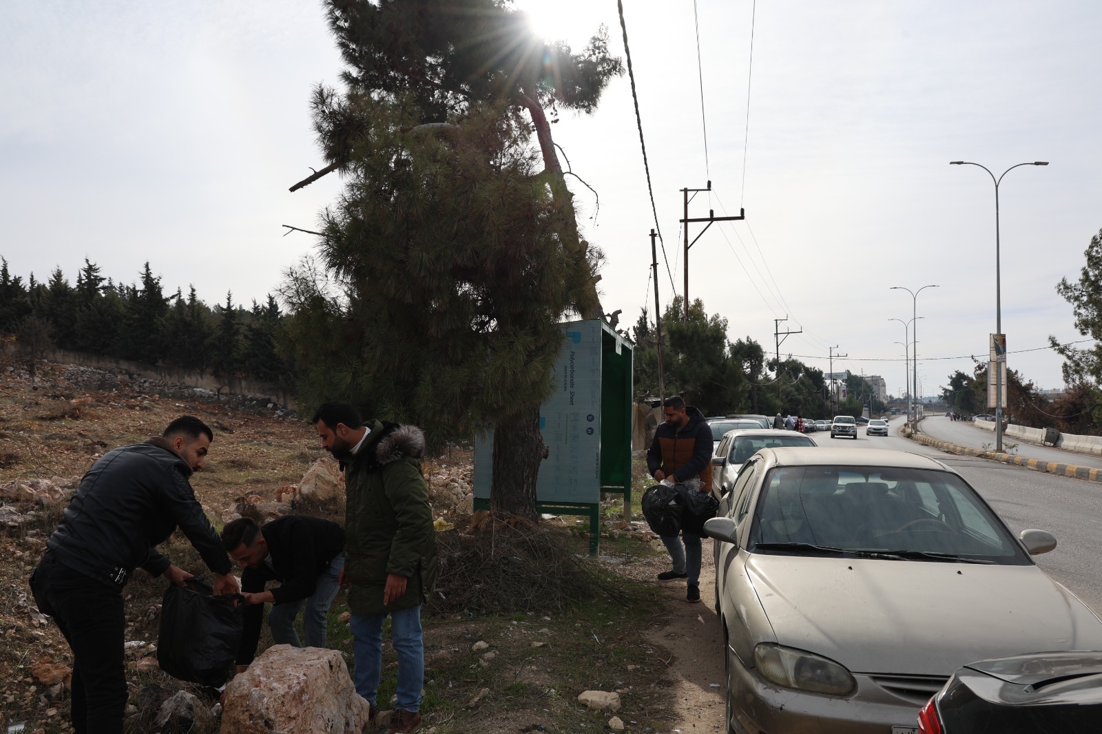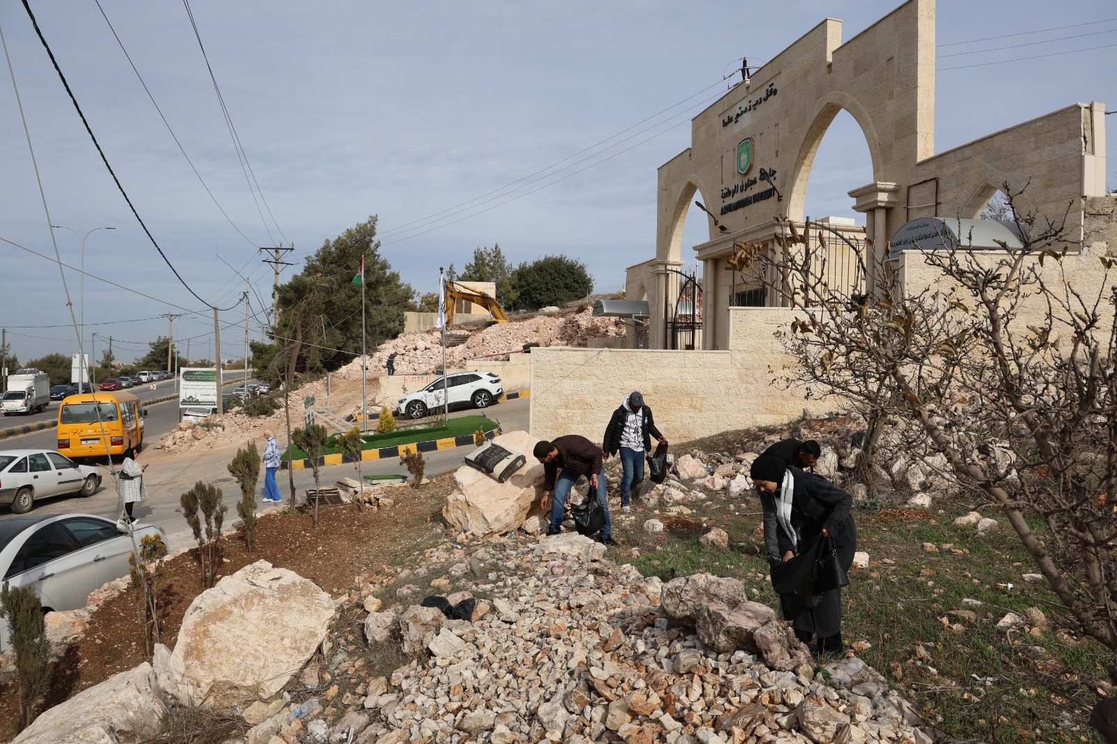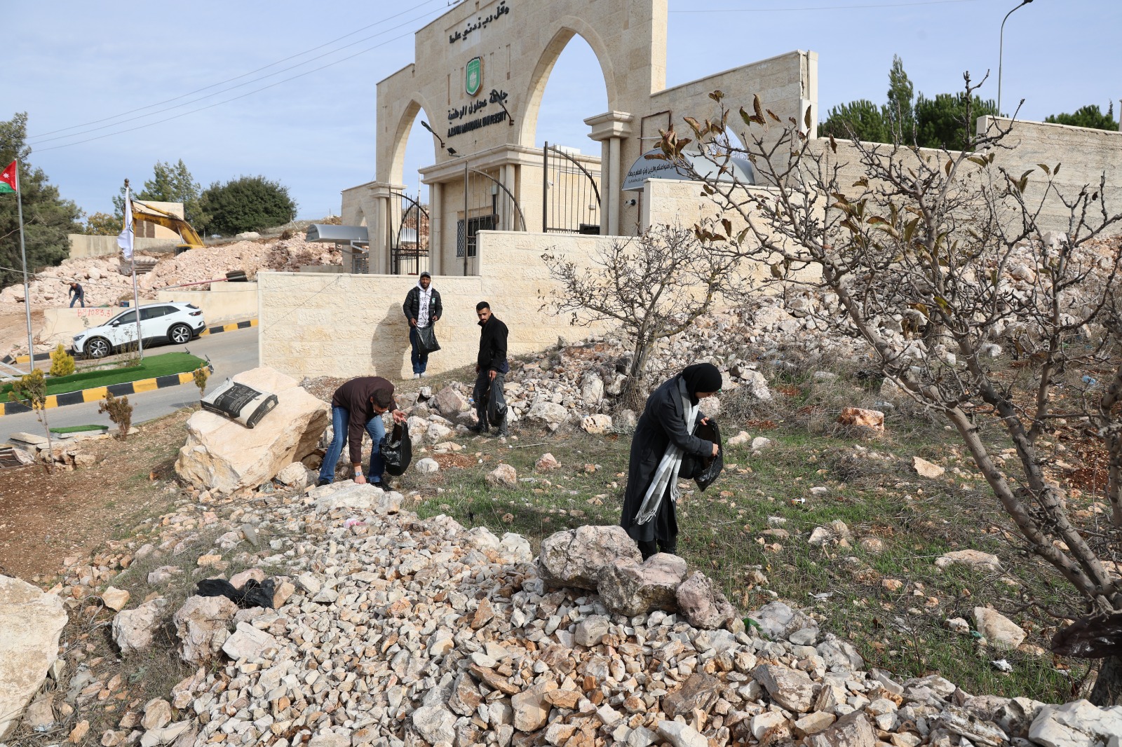 طلبة جامعة عجلون الوطنية ينفذون يوم عمل تطوعي لتنظيف الشوارع المحيطة بالجامعة