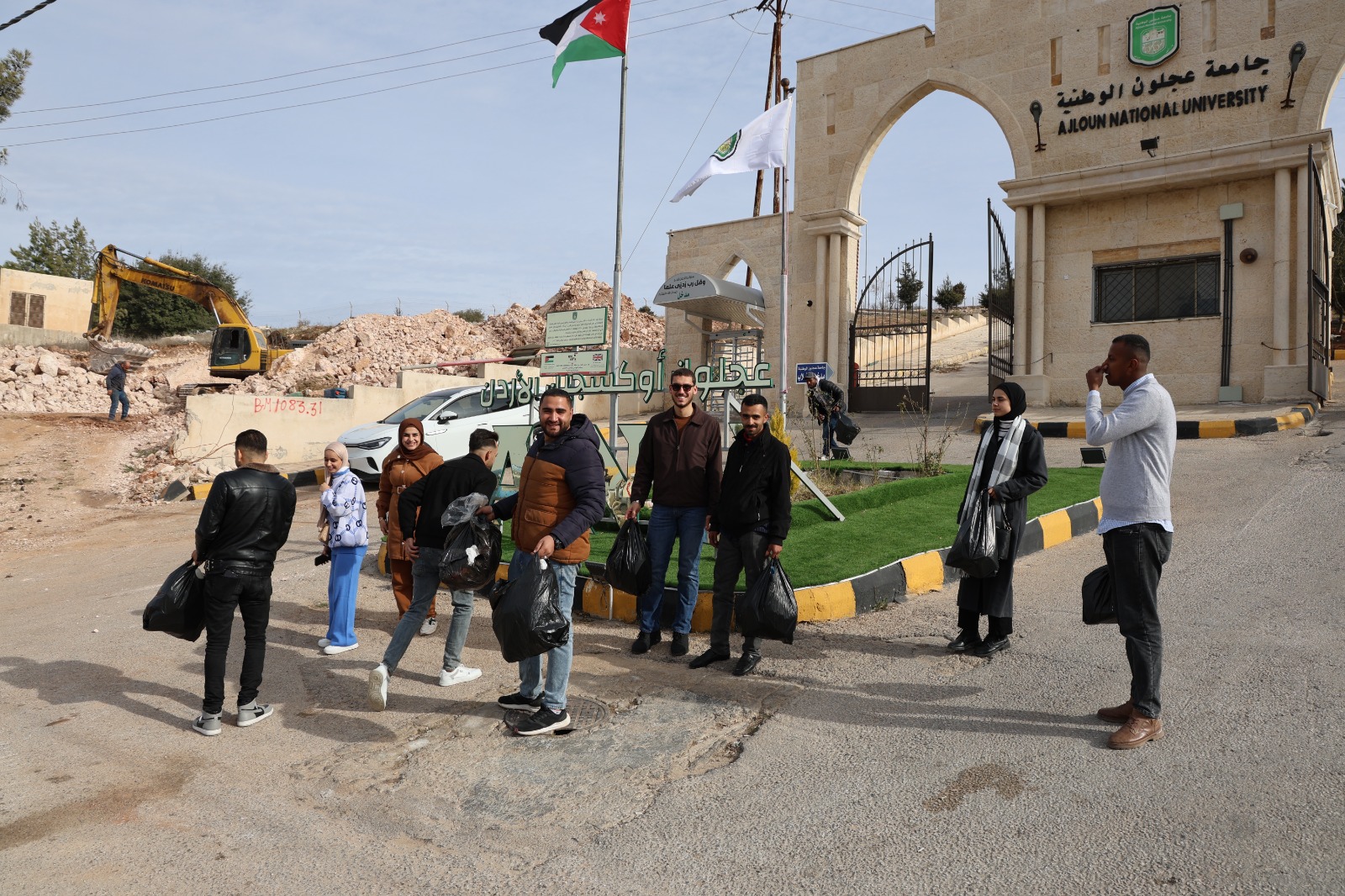 بمناسبة اليوم العالمي للعمل التطوعي، قامت مجموعة من طلبة جامعة عجلون الوطنية بإشراف عمادة شؤون الطلبة، بحملة تطوعية لتنظيف الشوارع المحيطة بالجامعة؛ في خطوة للإسهام في تعزيز الحفاظ على البيئة وجعل المجتمع أكثر نظافة.
