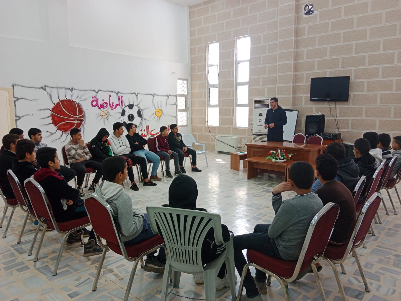 وفي مركز شباب المزار الشمالي محاضرة حول فضائل شهر رمضان بمشاركة ٢٠ شاب ضمن الفئة ١٢-١٦ عام .