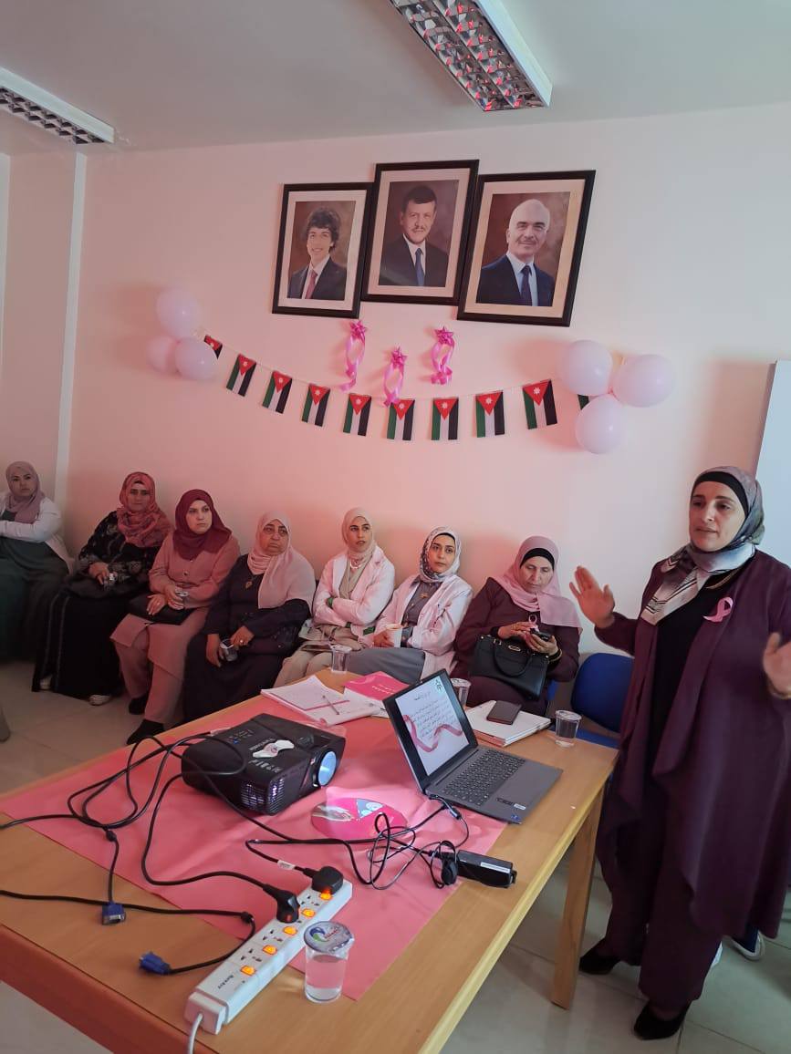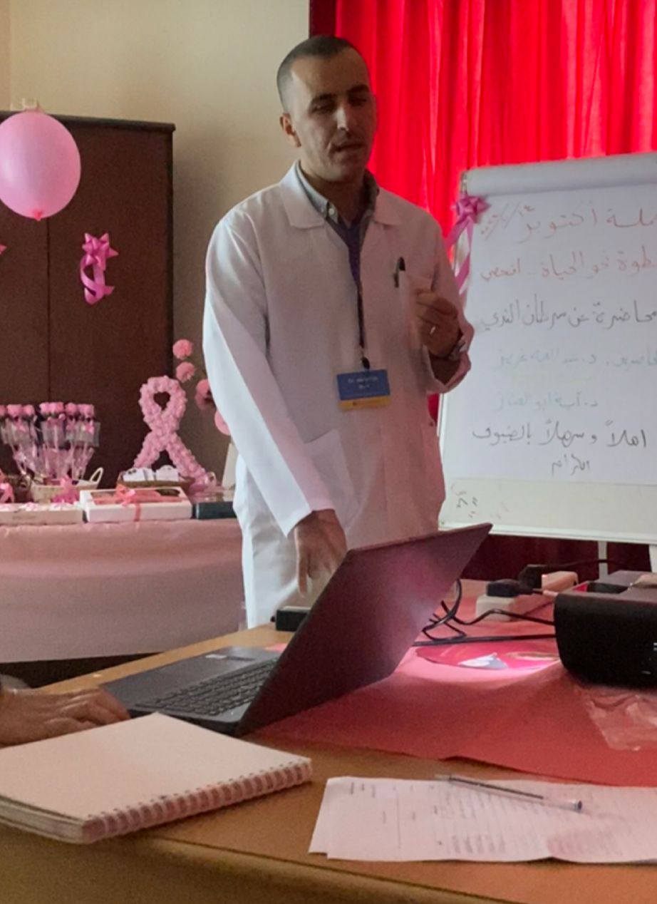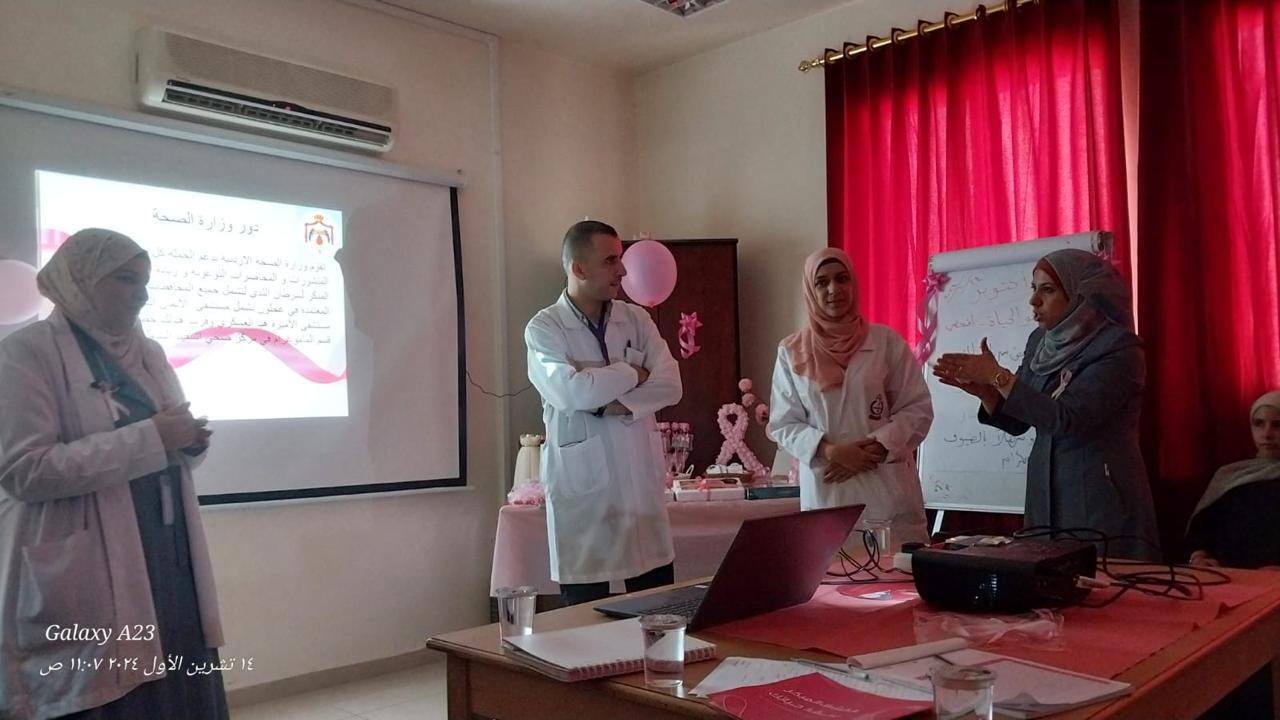 حيث قدم الدكتور عبدالله غريز والدكتورة آيه ابو العناز محاضرة بعنوان الكشف المبكر عن سرطان الثدي للسيدات في عمر الإنجاب في المجتمع المحلي
