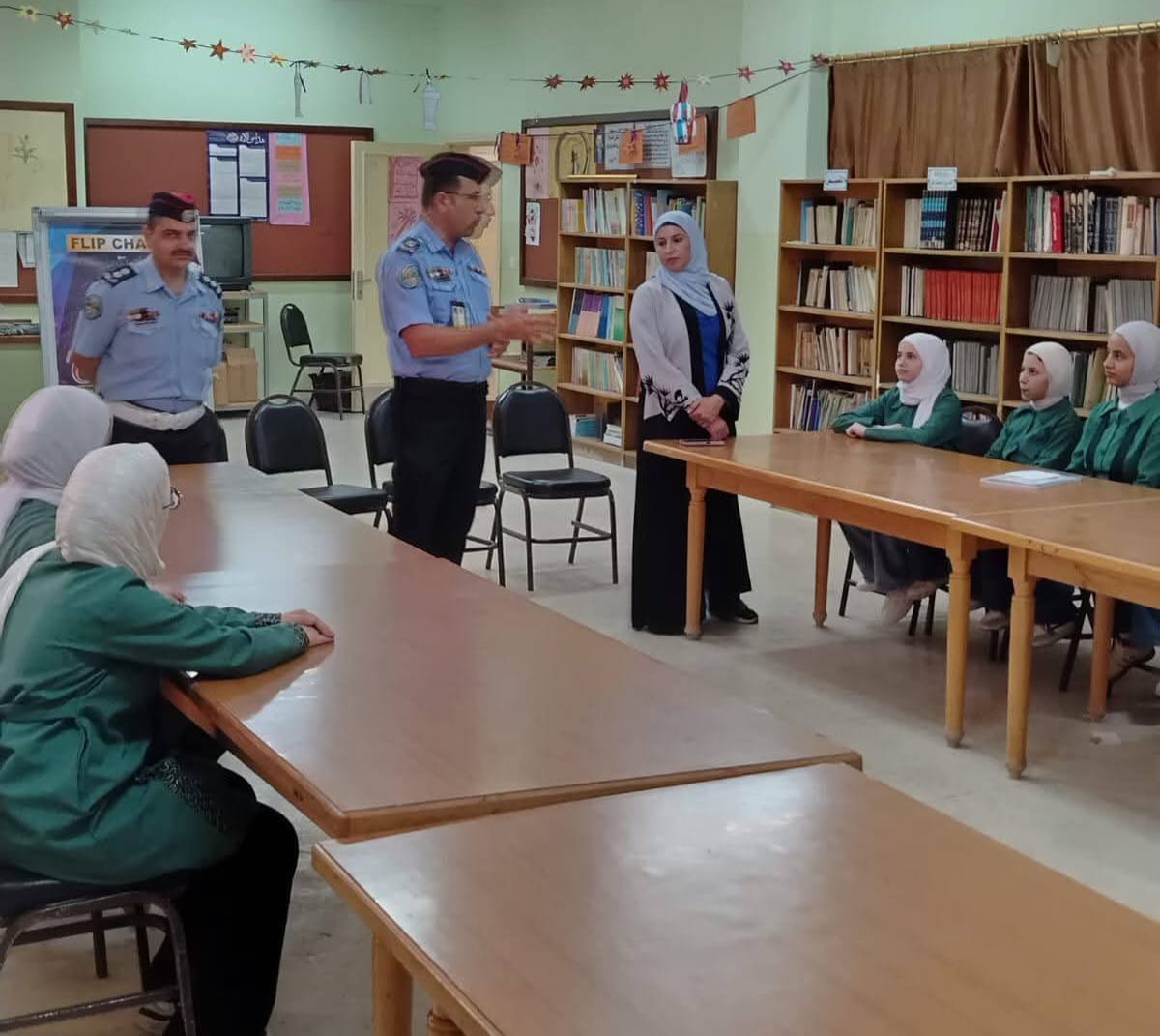 نظمت الشرطة المجتمعية في مديرية شرطة عجلون بالتعاون مع المعهد المروري وبالتنسيق مع مجلس التطوير التربوي محاضرة بعنوان ” التوعية المرورية” .