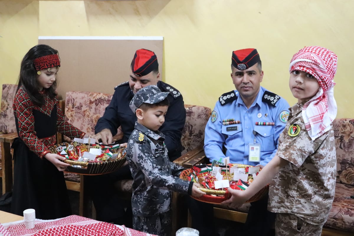 وقد رافق الاحتفالات اغان وطنية وقصائد شعرية وتوزيع العلم الاردني ورسم لوحات العلم الاردني في أجواء من الفرح الغامر .