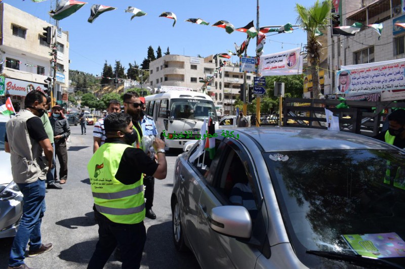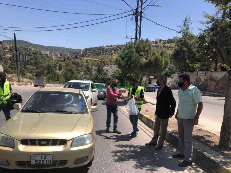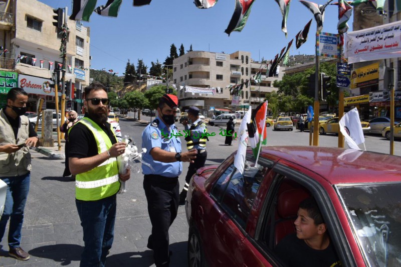 محافظ عجلون يشارك شباب المحافظة بتوزيع الأعلام الأردنية والكمامات بمناسبة عيد الإستقلال