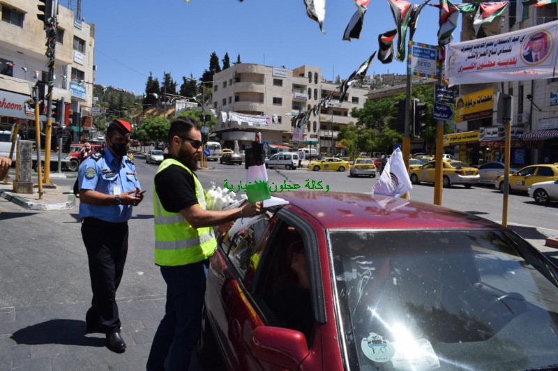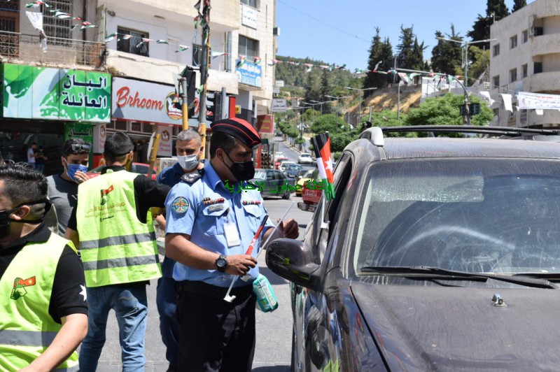وإشتملت إحتفالات شباب المحافظة ومديرية ثقافة عجلون التي شارك فيها ضباط وأفراد الشرطة المجتمعية وكوادر سير عجلون بعيد الإستقلال على توزيع الأعلام الأردنية والكمامات والهايجين وأوسمة النهضة على المواطنين وسائقي السيارات وأصحاب المحال التجارية في مدينة عجلون ، حيث صاحبت حملة التوزيع إرشادات توعوية قدمها شباب هيئة كلنا الأردن والشباب المشاركين تتركز على ضرورة مواصلة الإلتزام بشروط الصحة والسلامة العامة وأوامر الدفاع وخاصة في مجال إرتداء الكمامات والتباعد .