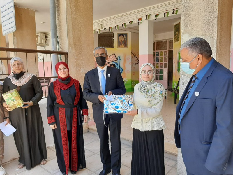 وفي نهاية الاحتفال كرم المحافظ النجادا المعلمات والطلبة الفائزين بمسابقات تحدي القراءة طلاب ولوحات مئوية الدولة الأردنية معلمين/ واللياقة البدنية طلاب تقديرا لجهودهم .