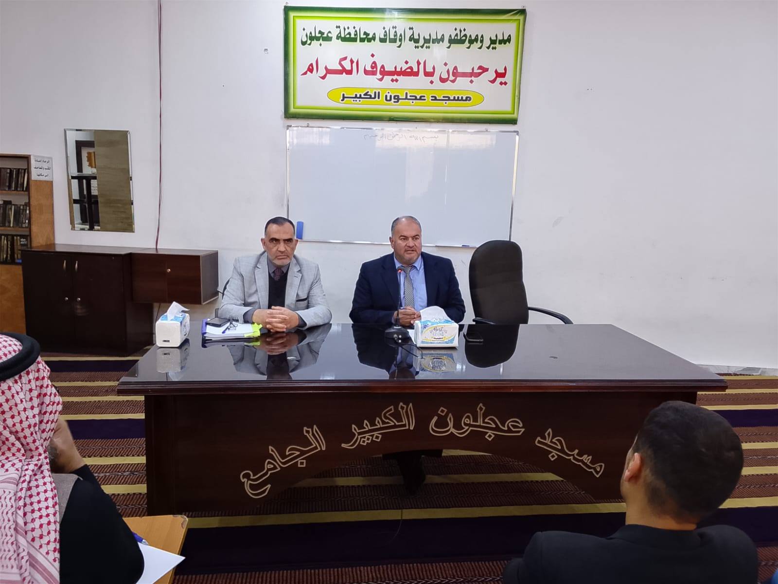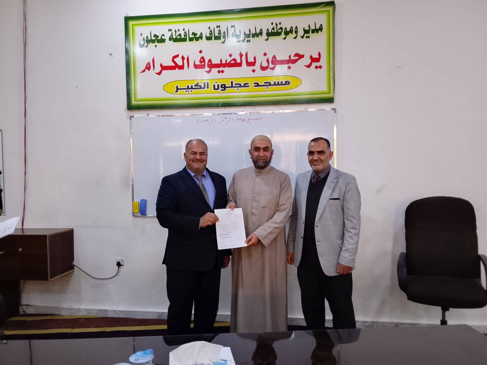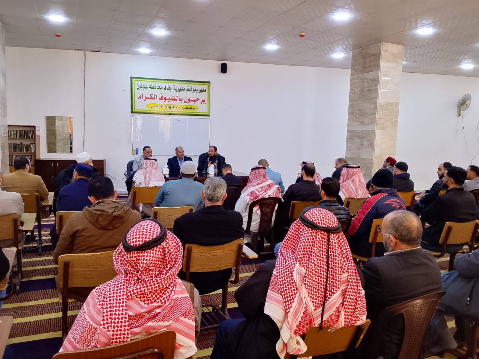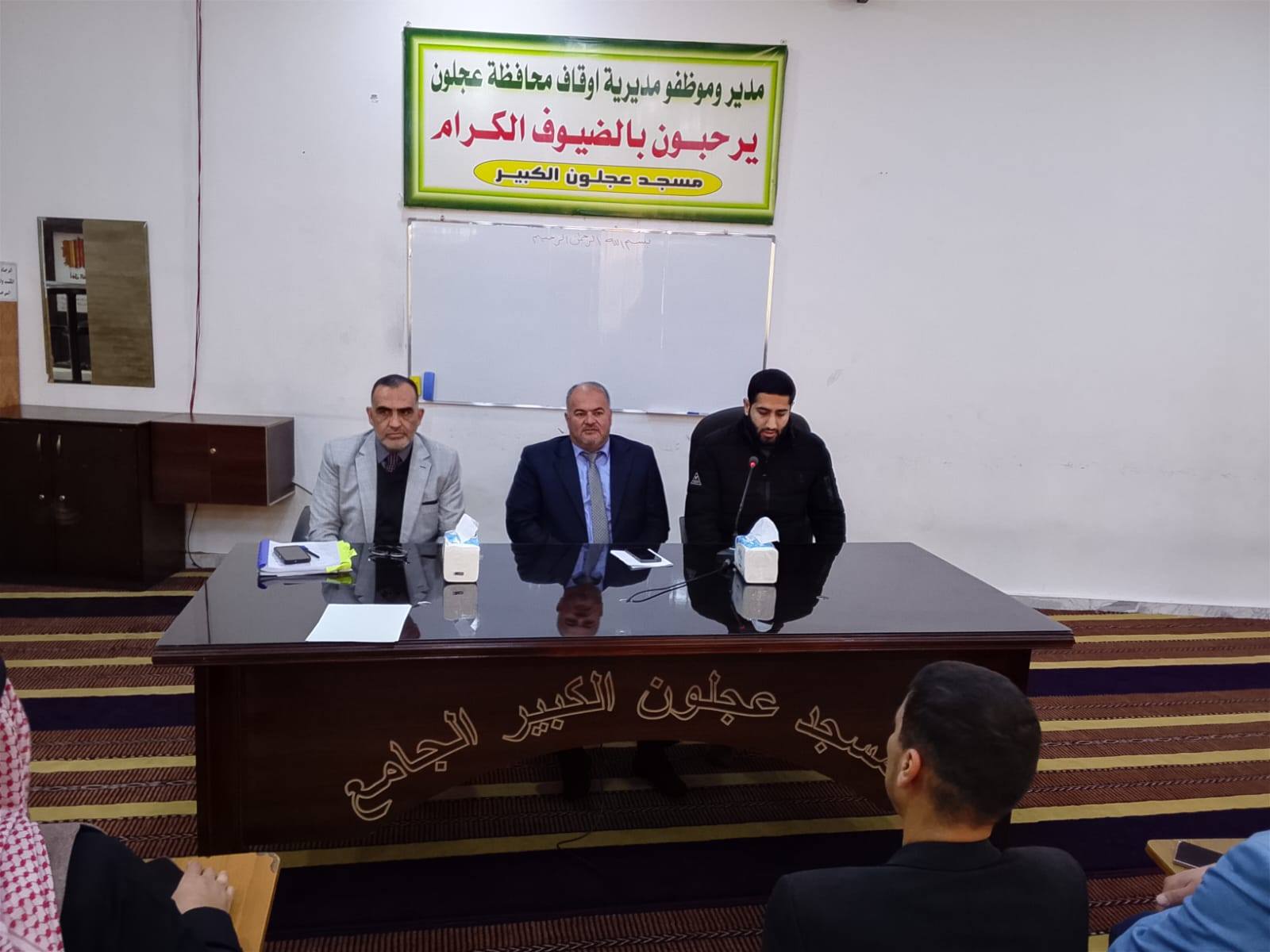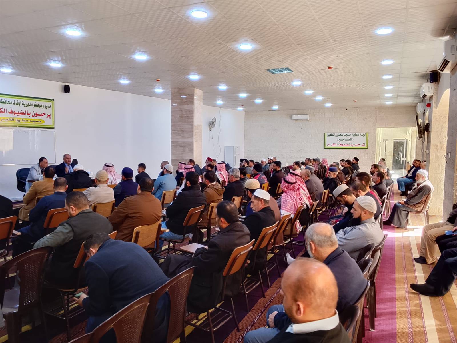 بتوجيهات من معالي وزير الأوقاف والشؤون والمقدسات الإسلامية الدكتور محمد الخلايلة المكرم ومتابعة من عطوفة الأمين العام الدكتور إسماعيل الخطبا المحترم عقد فضيلة مدير أوقاف محافظة عجلون الدكتور صفوان محمود القضاة اليوم الخميس 09 / 04 / 2026م اجتماعاً للسادة الأئمة والمؤذنين في قاعة مسجد عجلون الكبير وبحضور رئيس قسم الوعظ والإرشاد ؛ حيث بدأ الإجتماع بآيات عطرة من القرآن الكريم تلاها الشيخ ايمن الغزو وموعظة عن حماية البيئة وعدم الالقاء العشوائي للنفايات القاها الدكتور محمد عدنان القضاة.