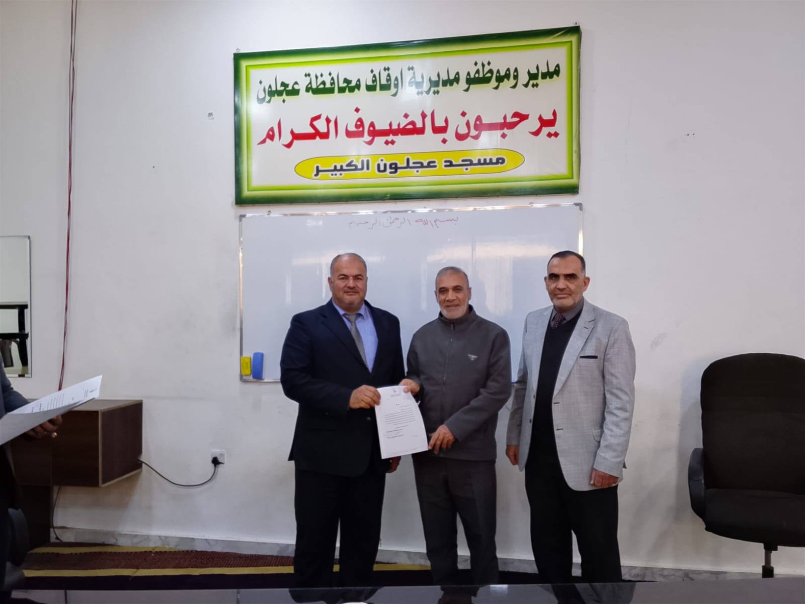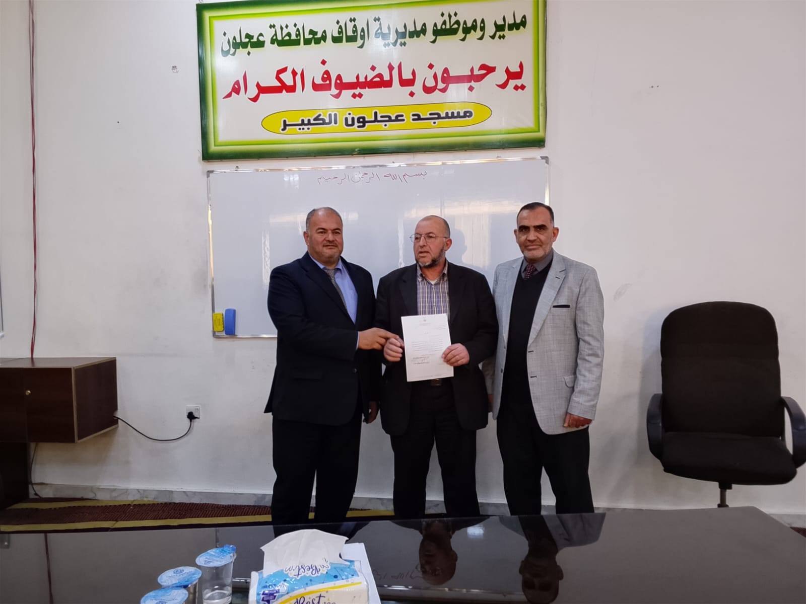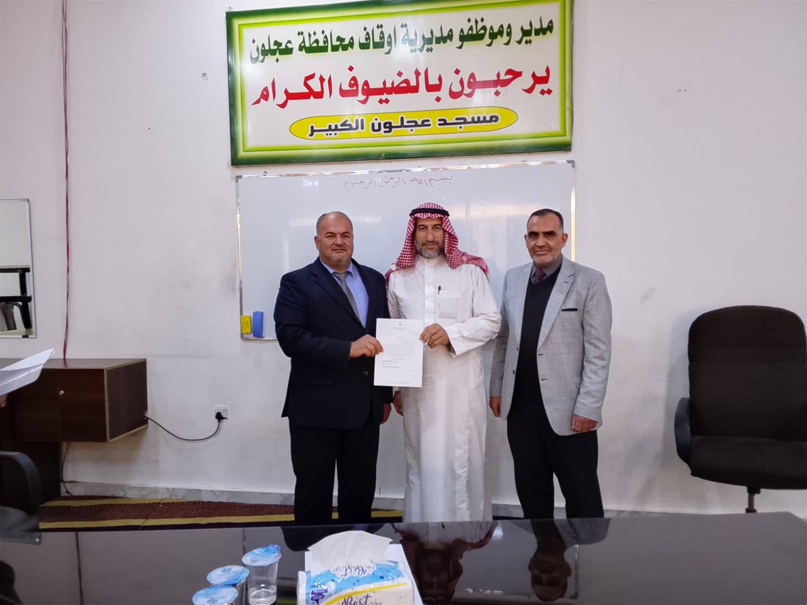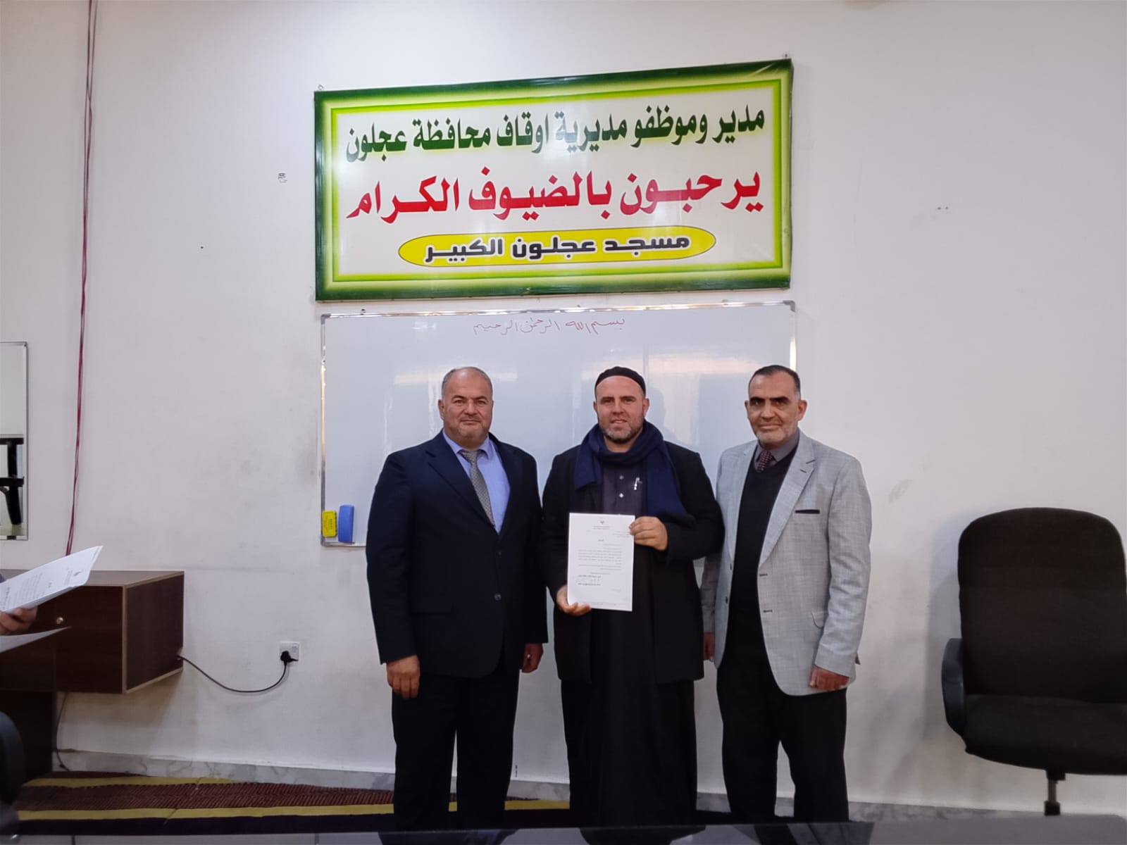 بتوجيهات من معالي وزير الأوقاف والشؤون والمقدسات الإسلامية الدكتور محمد الخلايلة المكرم ومتابعة من عطوفة الأمين العام الدكتور إسماعيل الخطبا المحترم عقد فضيلة مدير أوقاف محافظة عجلون الدكتور صفوان محمود القضاة اليوم الخميس 09 / 04 / 2026م اجتماعاً للسادة الأئمة والمؤذنين في قاعة مسجد عجلون الكبير وبحضور رئيس قسم الوعظ والإرشاد ؛ حيث بدأ الإجتماع بآيات عطرة من القرآن الكريم تلاها الشيخ ايمن الغزو وموعظة عن حماية البيئة وعدم الالقاء العشوائي للنفايات القاها الدكتور محمد عدنان القضاة.