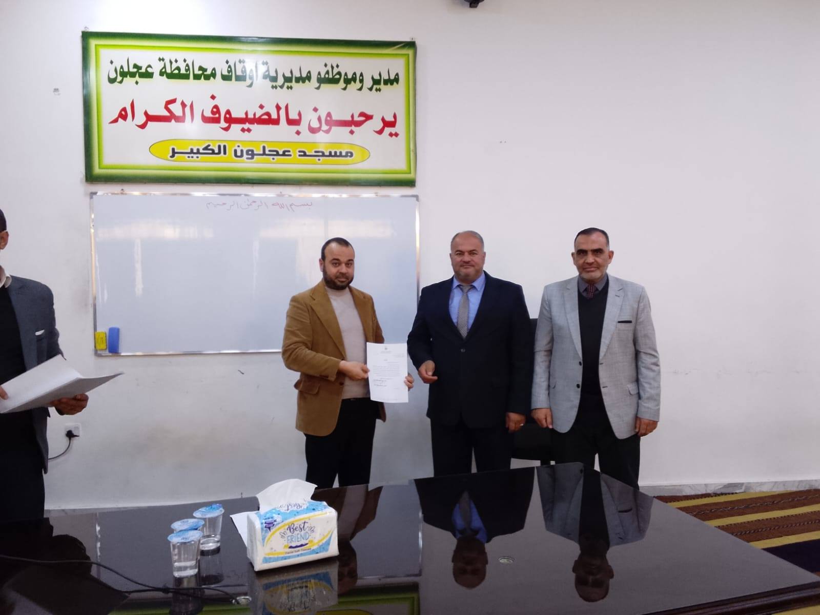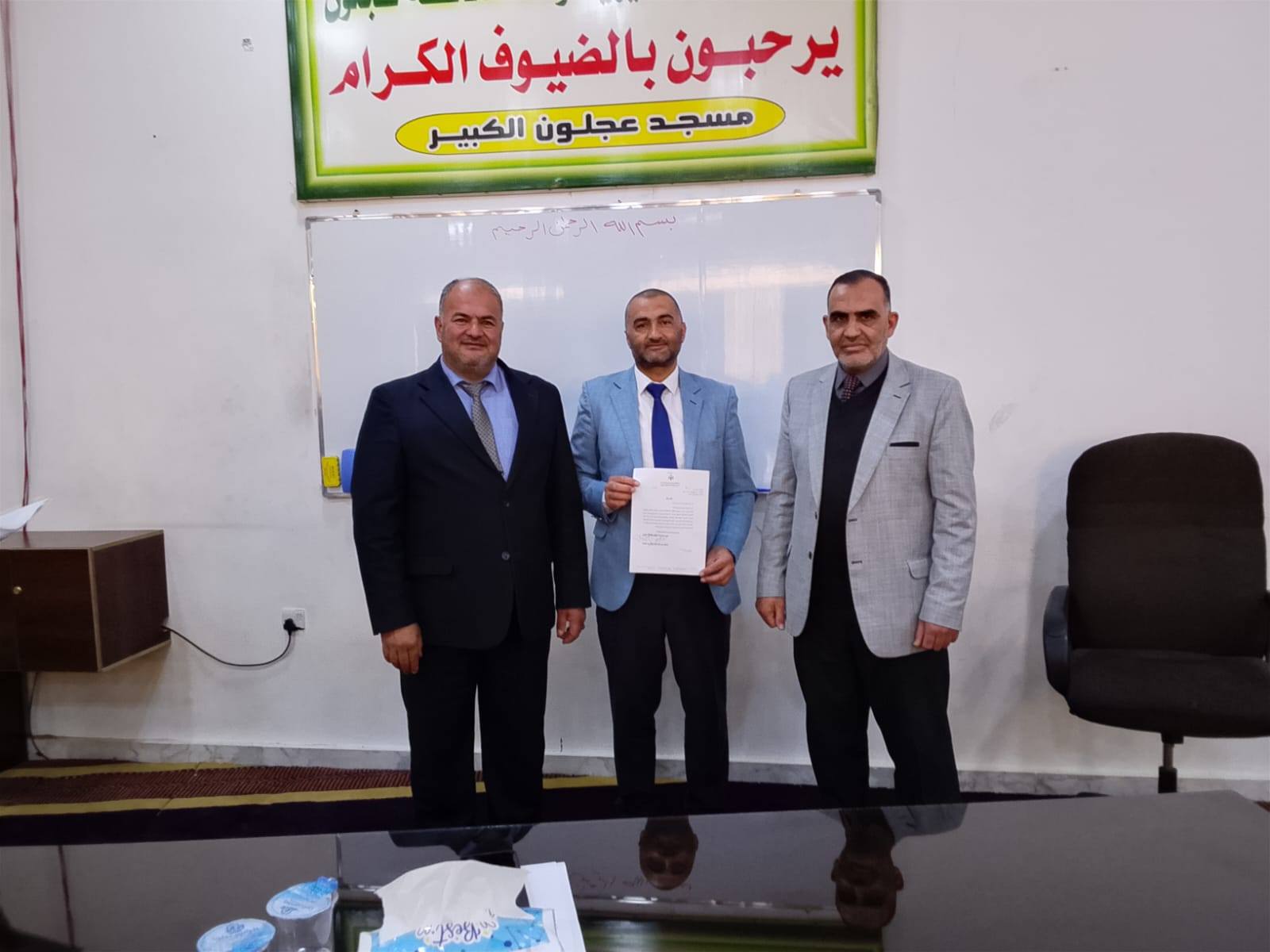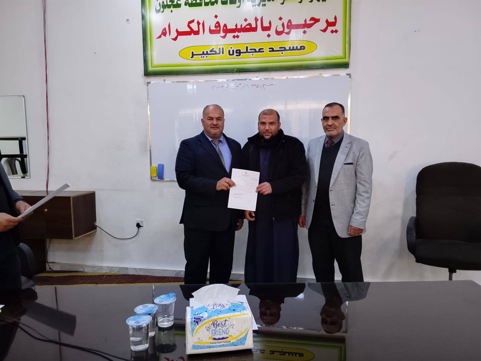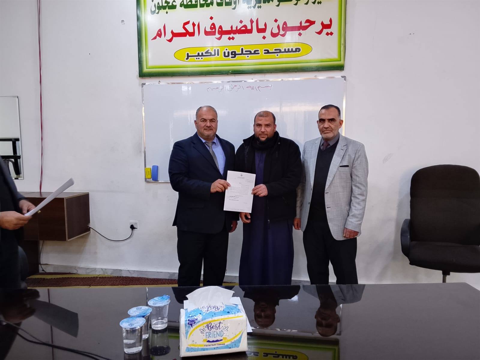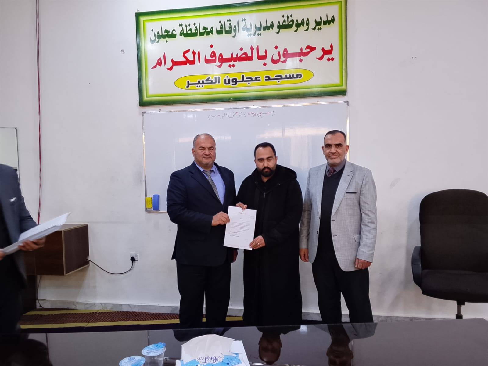 بتوجيهات من معالي وزير الأوقاف والشؤون والمقدسات الإسلامية الدكتور محمد الخلايلة المكرم ومتابعة من عطوفة الأمين العام الدكتور إسماعيل الخطبا المحترم عقد فضيلة مدير أوقاف محافظة عجلون الدكتور صفوان محمود القضاة اليوم الخميس 09 / 04 / 2026م اجتماعاً للسادة الأئمة والمؤذنين في قاعة مسجد عجلون الكبير وبحضور رئيس قسم الوعظ والإرشاد ؛ حيث بدأ الإجتماع بآيات عطرة من القرآن الكريم تلاها الشيخ ايمن الغزو وموعظة عن حماية البيئة وعدم الالقاء العشوائي للنفايات القاها الدكتور محمد عدنان القضاة.