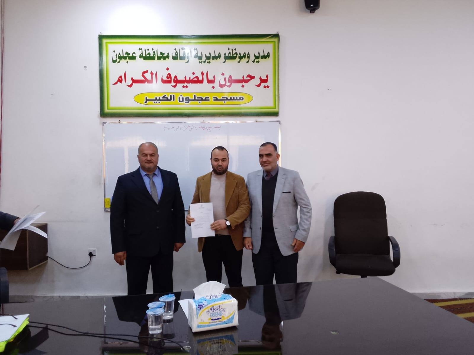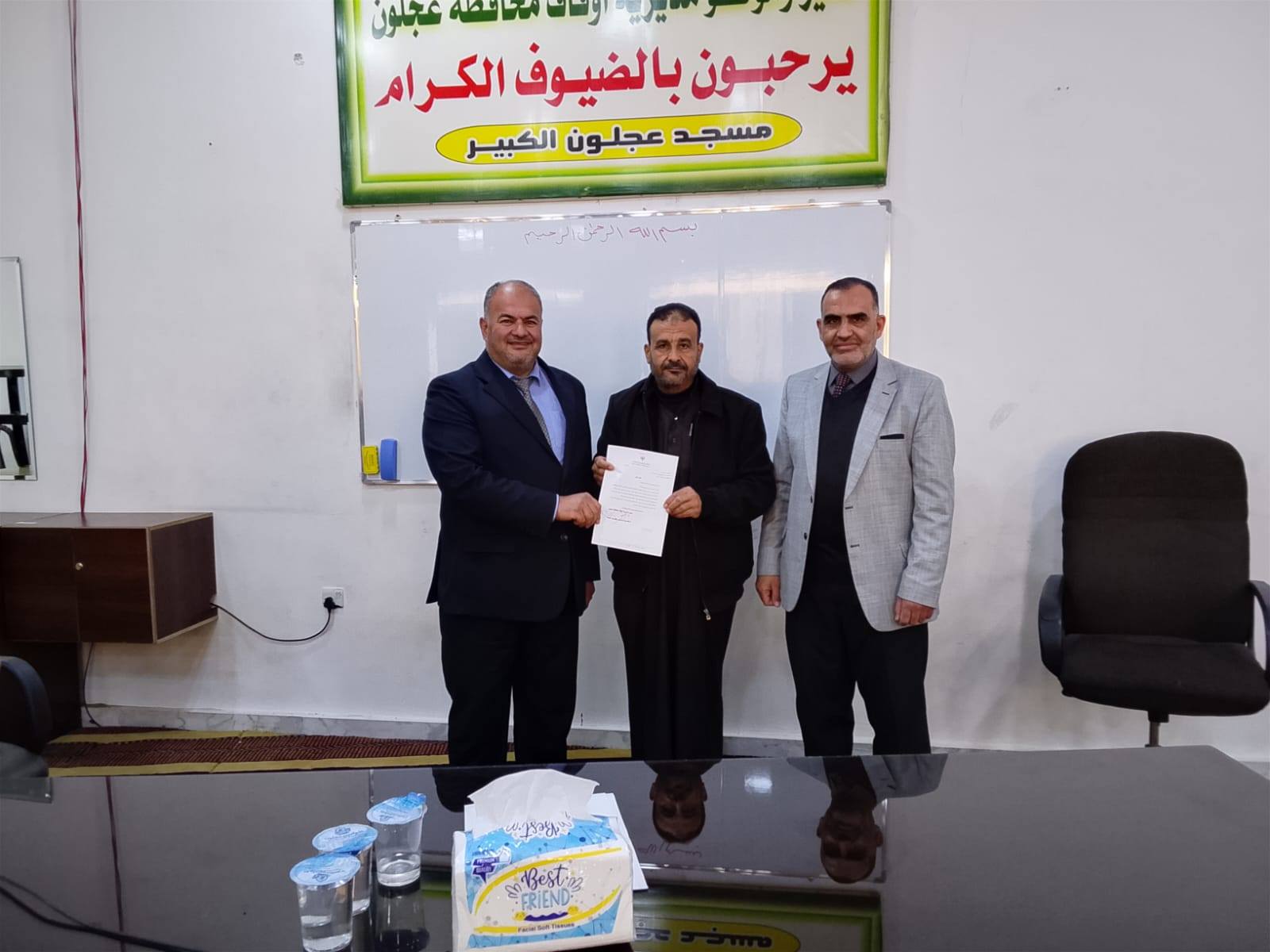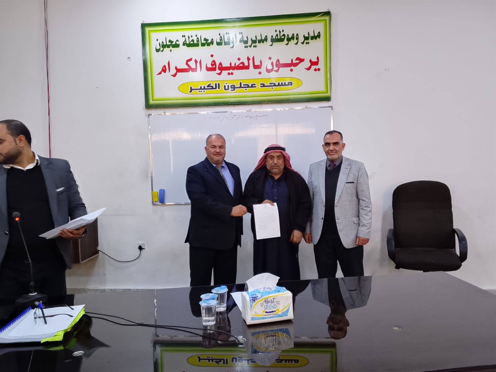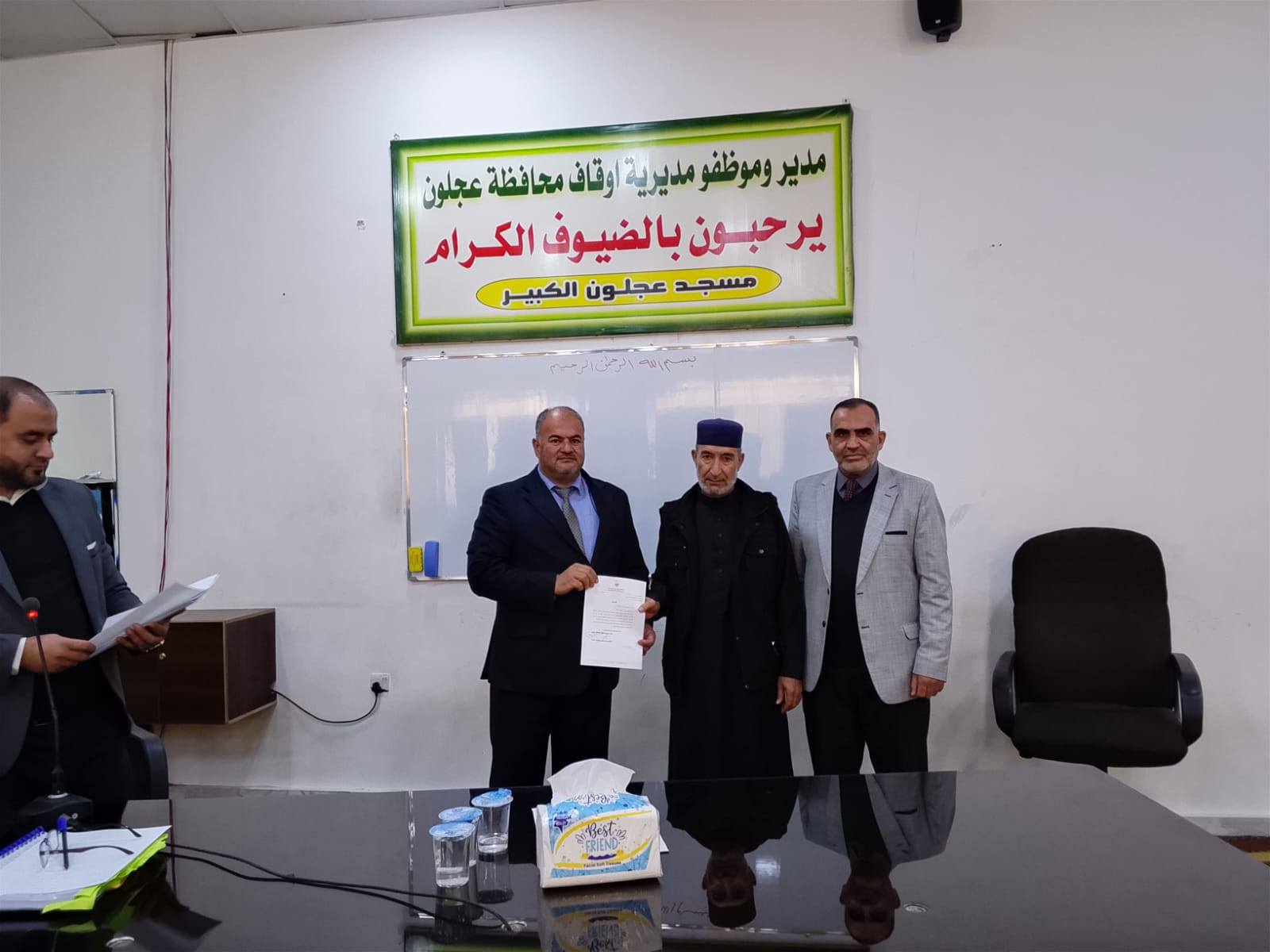 بتوجيهات من معالي وزير الأوقاف والشؤون والمقدسات الإسلامية الدكتور محمد الخلايلة المكرم ومتابعة من عطوفة الأمين العام الدكتور إسماعيل الخطبا المحترم عقد فضيلة مدير أوقاف محافظة عجلون الدكتور صفوان محمود القضاة اليوم الخميس 09 / 04 / 2026م اجتماعاً للسادة الأئمة والمؤذنين في قاعة مسجد عجلون الكبير وبحضور رئيس قسم الوعظ والإرشاد ؛ حيث بدأ الإجتماع بآيات عطرة من القرآن الكريم تلاها الشيخ ايمن الغزو وموعظة عن حماية البيئة وعدم الالقاء العشوائي للنفايات القاها الدكتور محمد عدنان القضاة.
