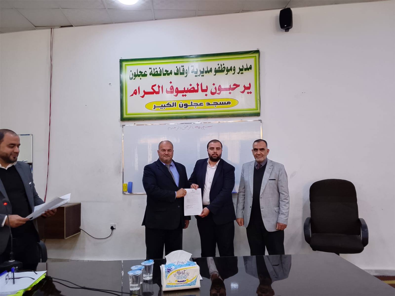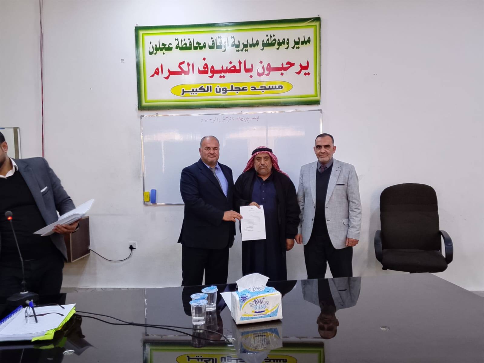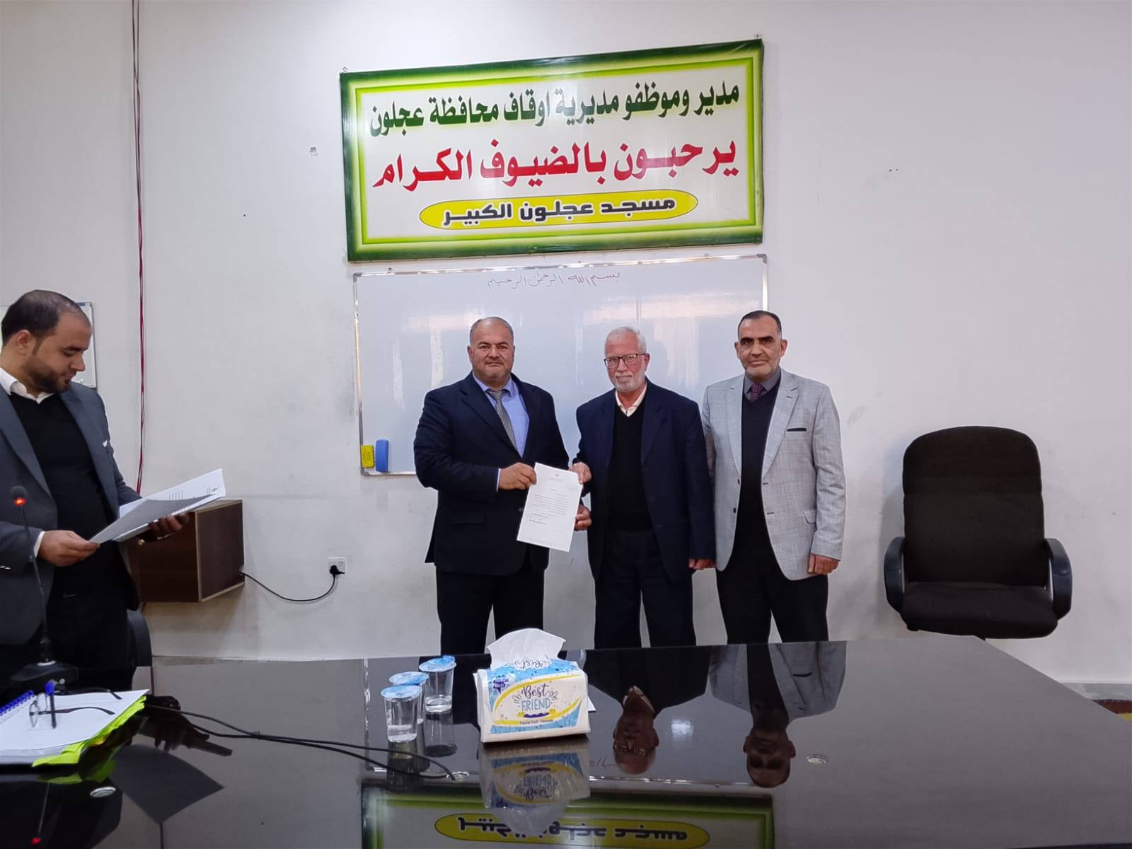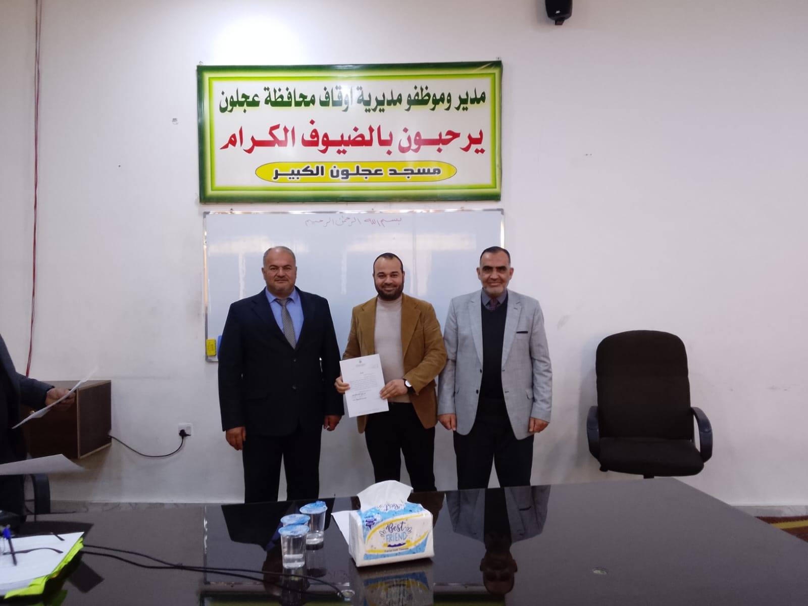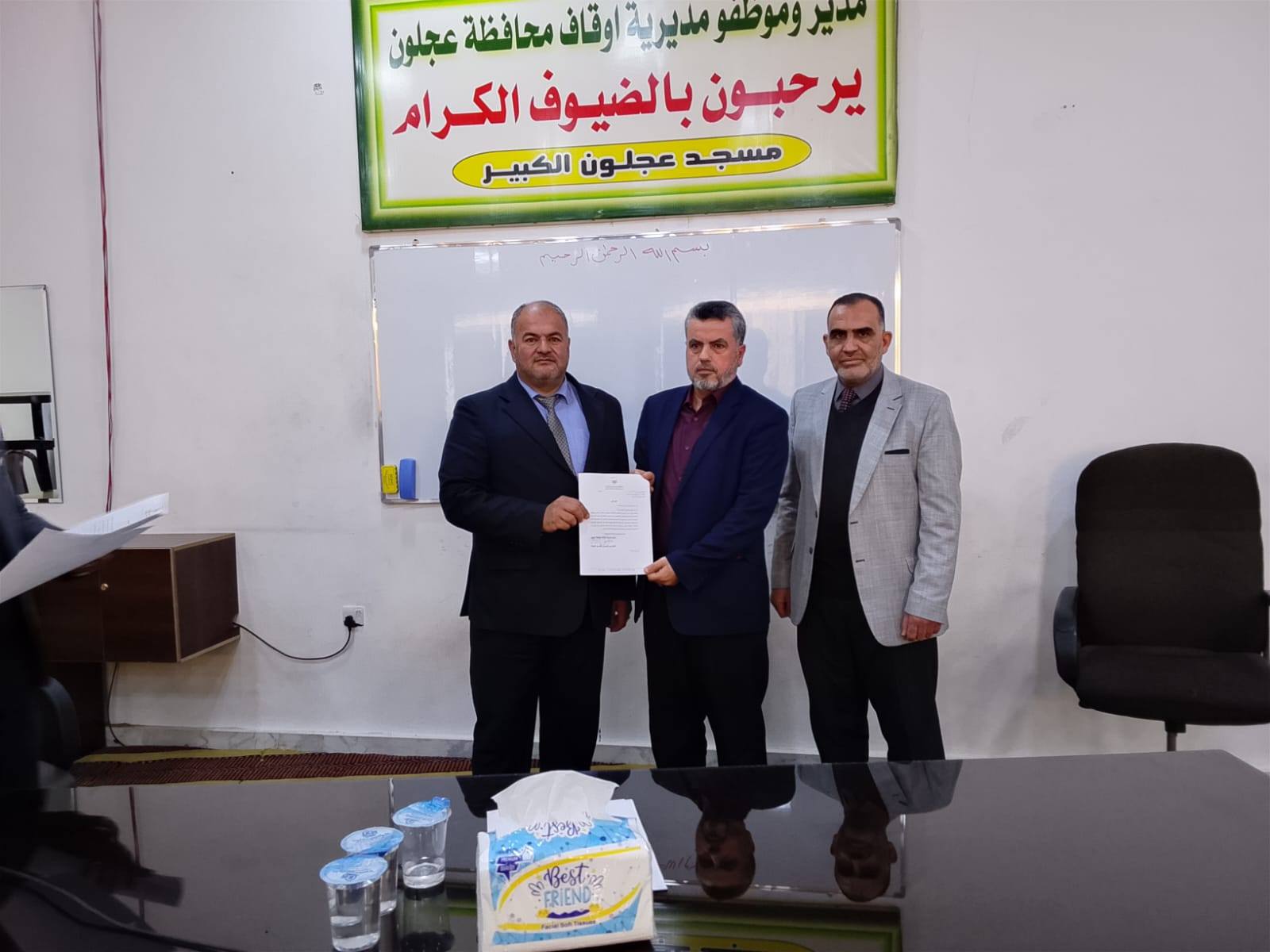 بتوجيهات من معالي وزير الأوقاف والشؤون والمقدسات الإسلامية الدكتور محمد الخلايلة المكرم ومتابعة من عطوفة الأمين العام الدكتور إسماعيل الخطبا المحترم عقد فضيلة مدير أوقاف محافظة عجلون الدكتور صفوان محمود القضاة اليوم الخميس 09 / 04 / 2026م اجتماعاً للسادة الأئمة والمؤذنين في قاعة مسجد عجلون الكبير وبحضور رئيس قسم الوعظ والإرشاد ؛ حيث بدأ الإجتماع بآيات عطرة من القرآن الكريم تلاها الشيخ ايمن الغزو وموعظة عن حماية البيئة وعدم الالقاء العشوائي للنفايات القاها الدكتور محمد عدنان القضاة.