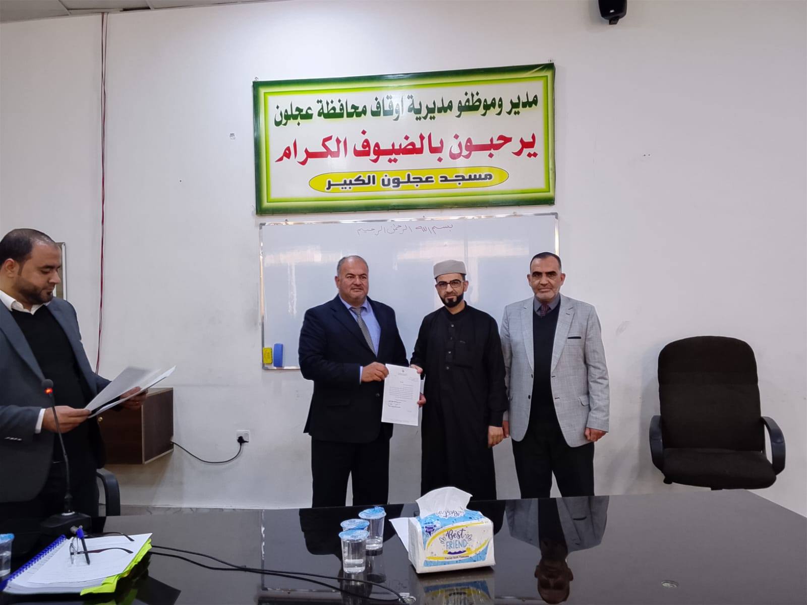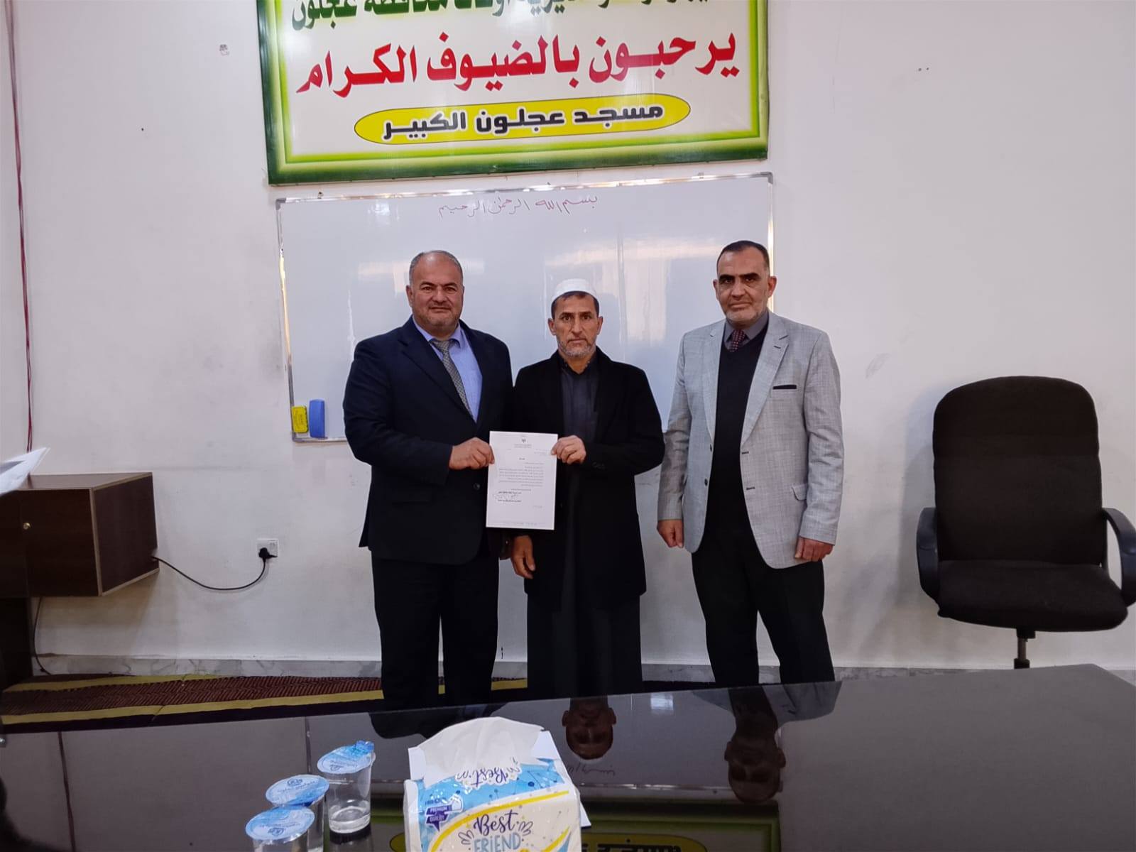 وقدم فضيلته كتب شكر لعدد من السادة الأئمة والمؤذنين على تميزهم في العمل والدعوة الى الله تعالى بالحكمة والموعظة الحسنة والحفاظ على المساجد ومقتنياتها.