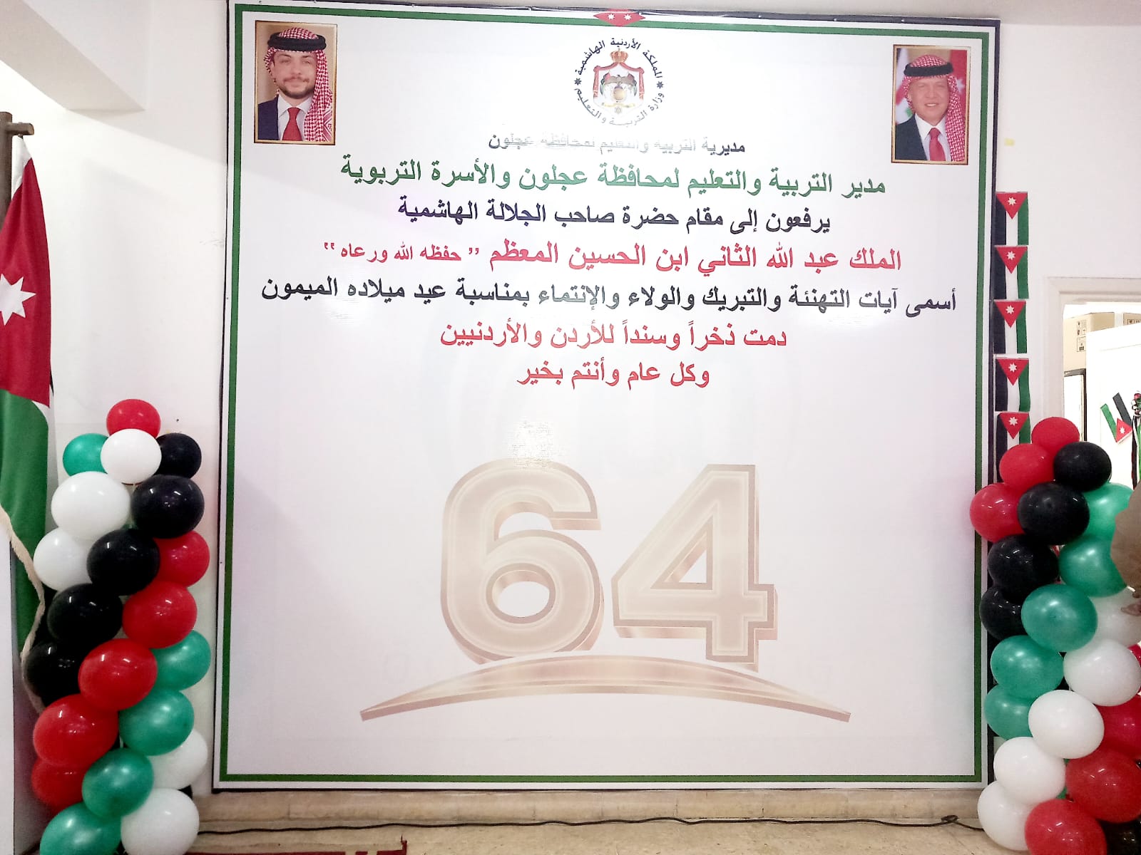 كما أشاد بالجهود التي بذلتها مديرية التربية والتعليم في تنظيم هذه الفعالية المهيبة ودورها في ترسيخ قيم الانتماء والاعتزاز بالوطن والقيادة الهاشمية، داعيا الله العلي القدير أن يحفظ وطننا الأردن عزيزا منيعا في ظل القيادة الهاشمية الحكيمة، جلالة الملك عبدالله الثاني وولي عهده الأمين سمو الأمير حسين بن عبدالله حفظهما الله ورعاهما.