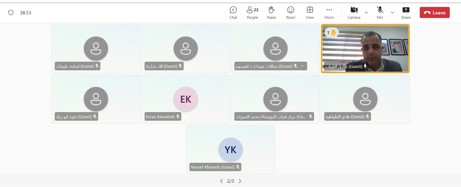 عقدت مديرية شباب إربد، اليوم الثلاثاء، اجتماعاً عبر تقنية الاتصال المرئي بحضور مدير شباب إربد، رائد أبو خليفة، و رؤساء الأقسام والمراكز الشبابية، لمناقشة آليات تنفيذ البرامج المركزية وتعزيز مستوى الأداء في المراكز الشبابية.