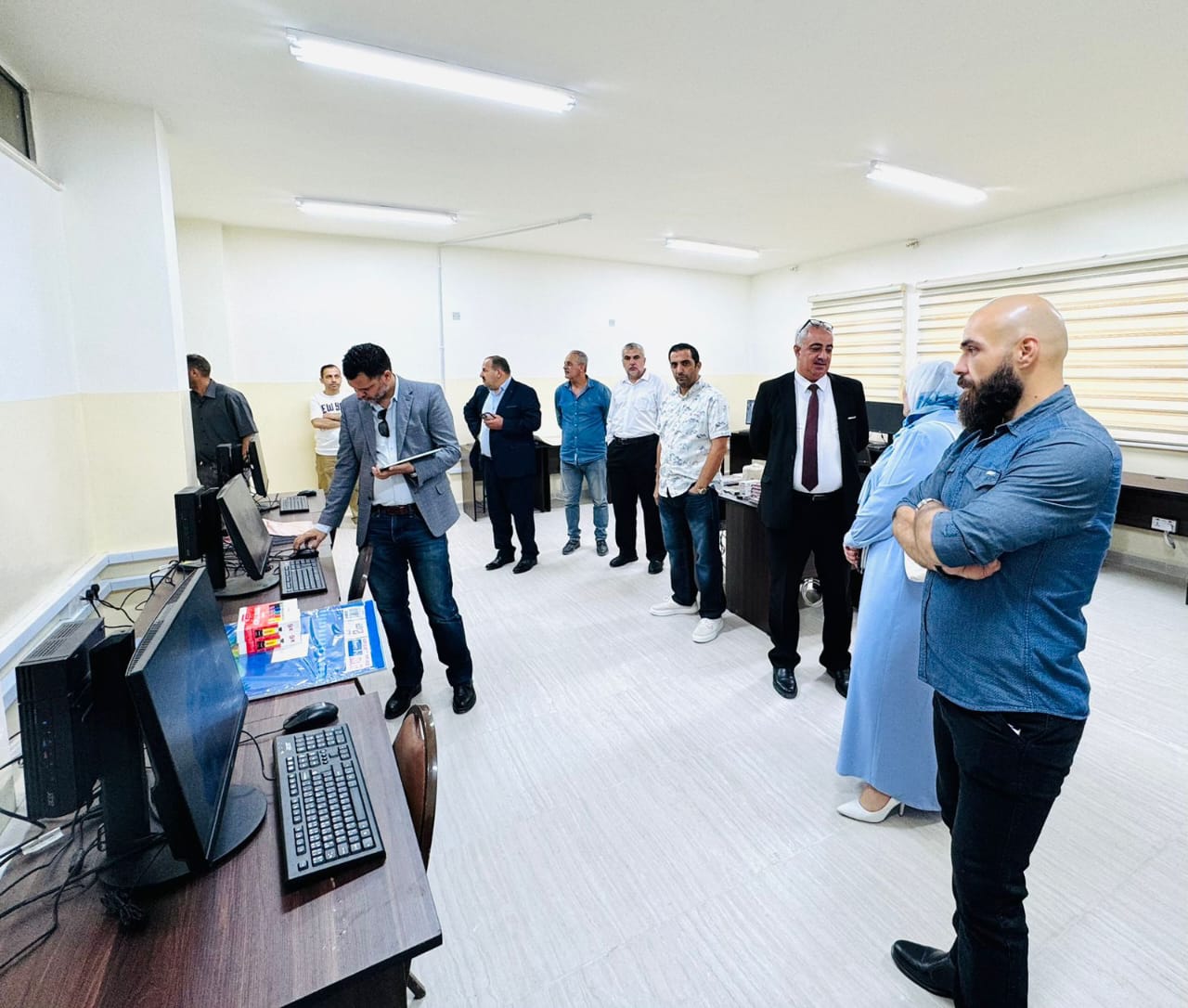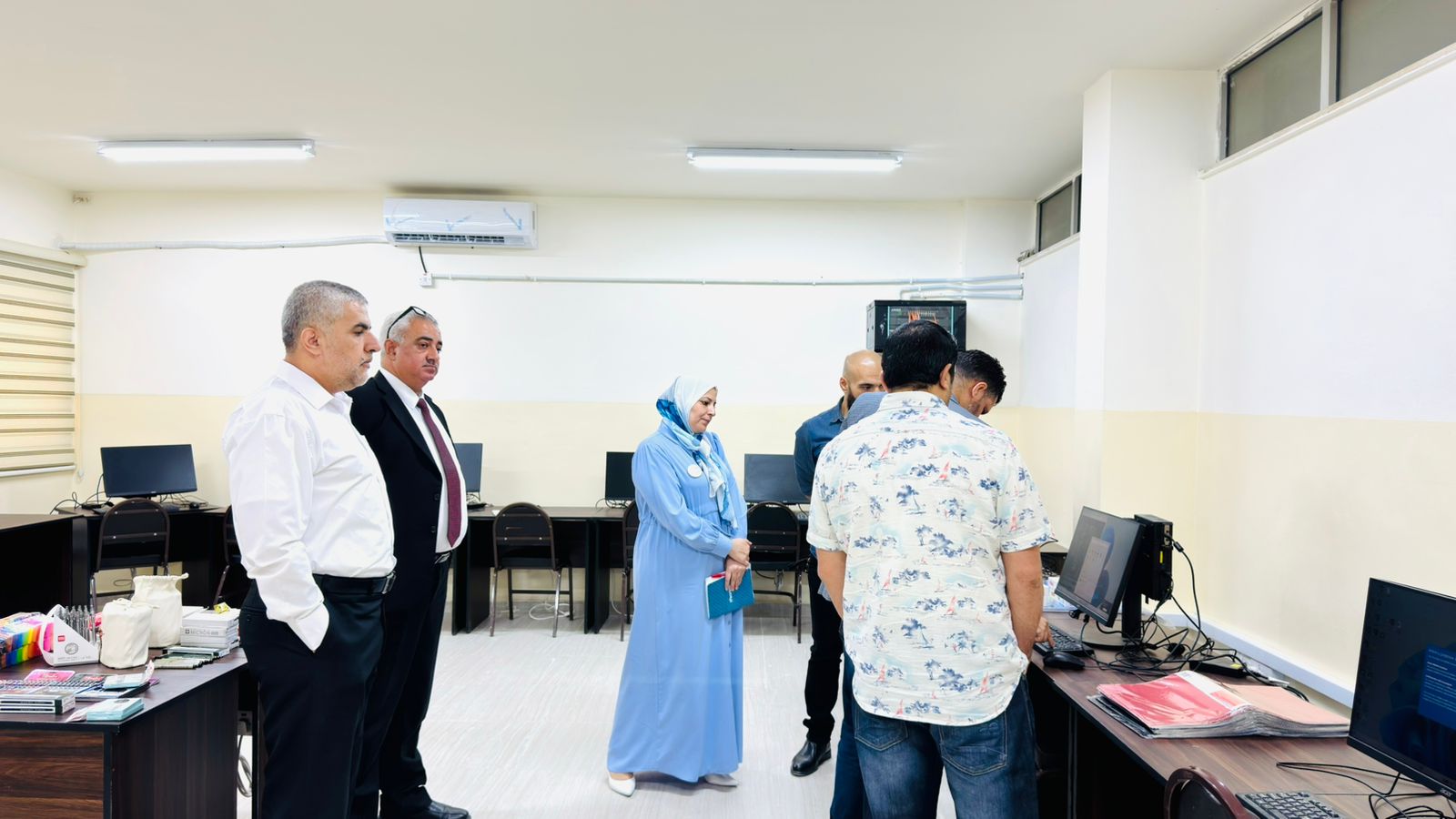 زار مدير التربية والتعليم لمحافظة عجلون خلدون جويعد مدرسة عنجرة الأساسية للبنين يرافقه مدقق Pearson الدكتور سامي المشاقبة و مسير مسار قسم الوسائط الإبداعية جوليانا البصول ورئيس قسم التعليم المهني الدكتور سمير بني فواز لمتابعة جاهزيتها لاعتماد تخصص الوسائط الإبداعية المستحدث في المدرسة.