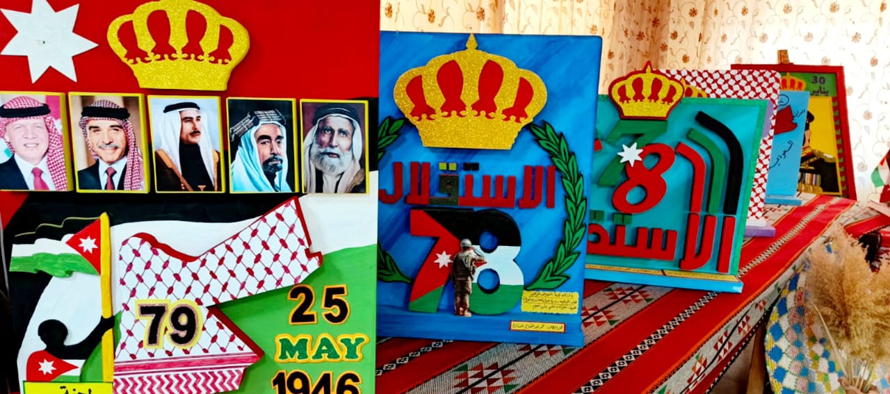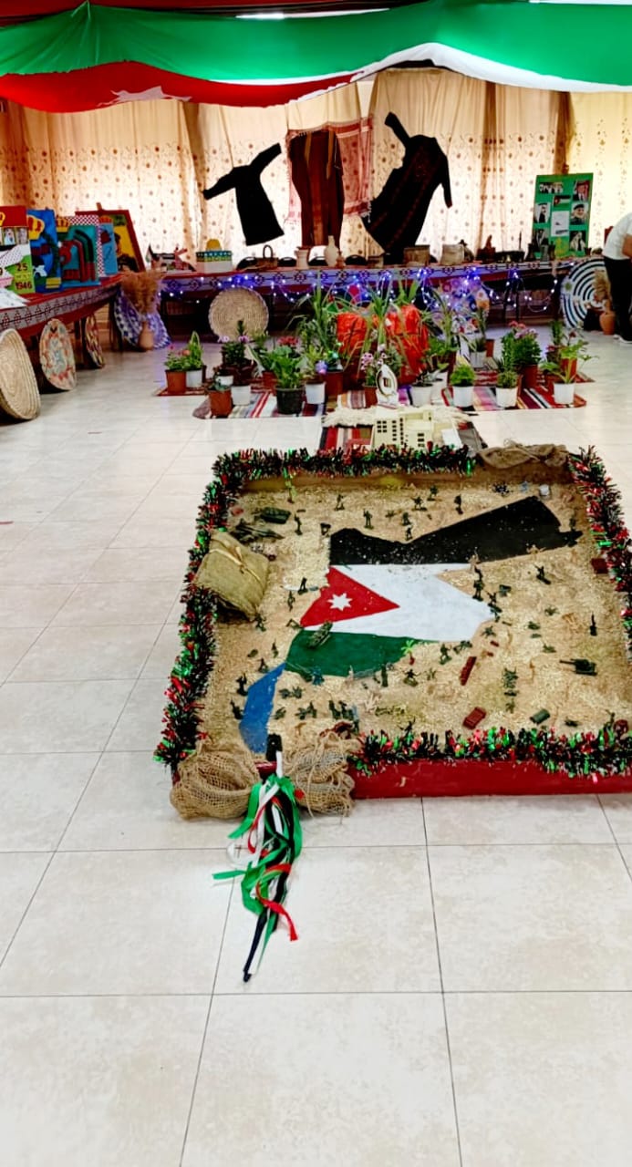 تكون المعرض من زاوية للتراث الشعبي والذي يعكس بدوره الموروث الأردني من لباس ومأكولات وأدوات تستخدم في الحياة اليومية ، وزاوية ( إعادة الألق للمكتبة المدرسية) احتوت مجسمات ولوحات تبين أهمية المكتبة وتعبر عن حب الوطن والاعتزاز بالهوية الأردنية.